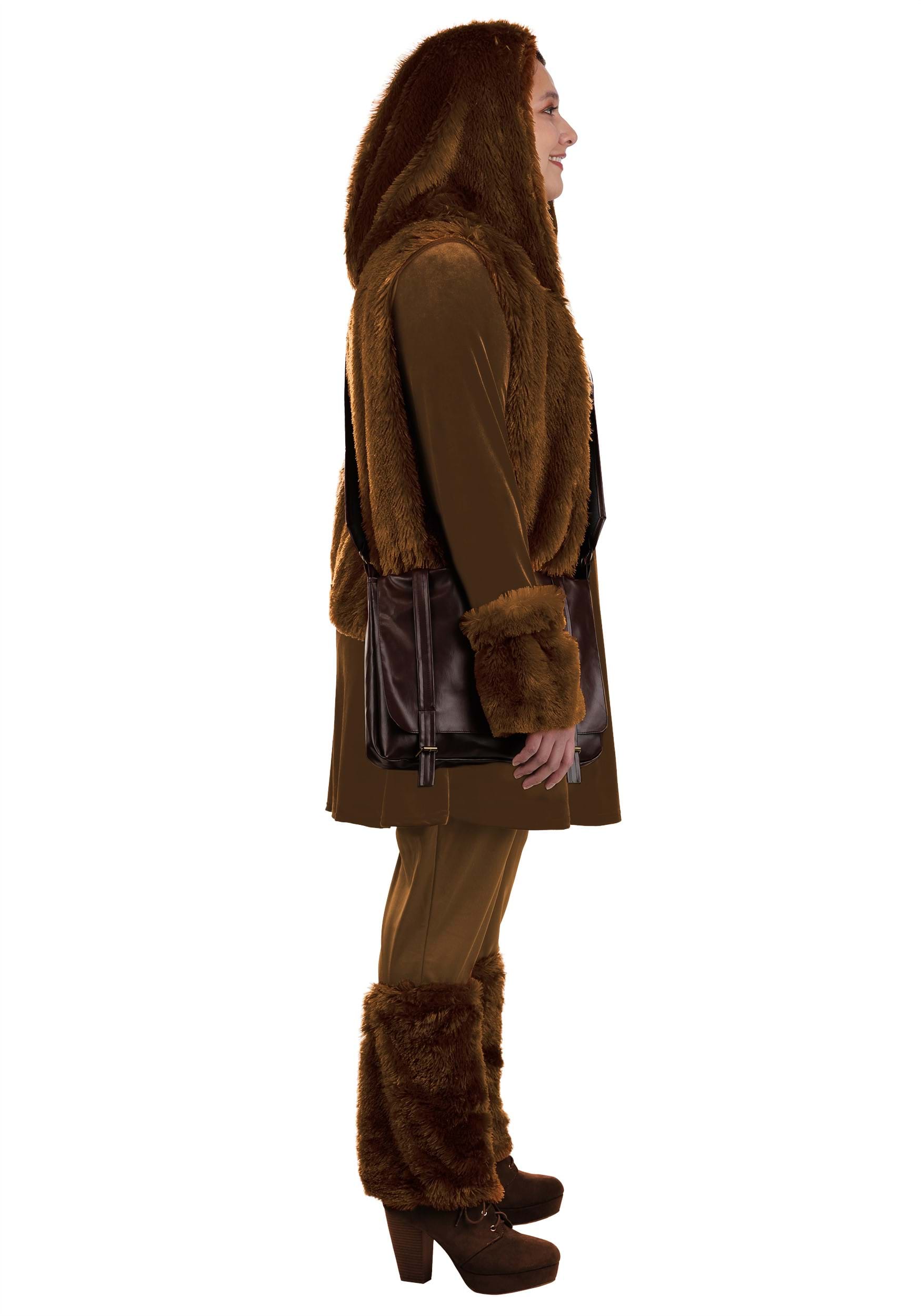 The attached hooded vest is trimmed with shaggy brown plush fur, giving the look a wild, Wookiee-approved texture. Matching faux fur cuffs on the gloves and leg warmers complete the signature style. Elastic at the wrists and ankles keeps everything in place, so you can focus on enjoying your time in the spotlight—or at the controls of the Falcon.