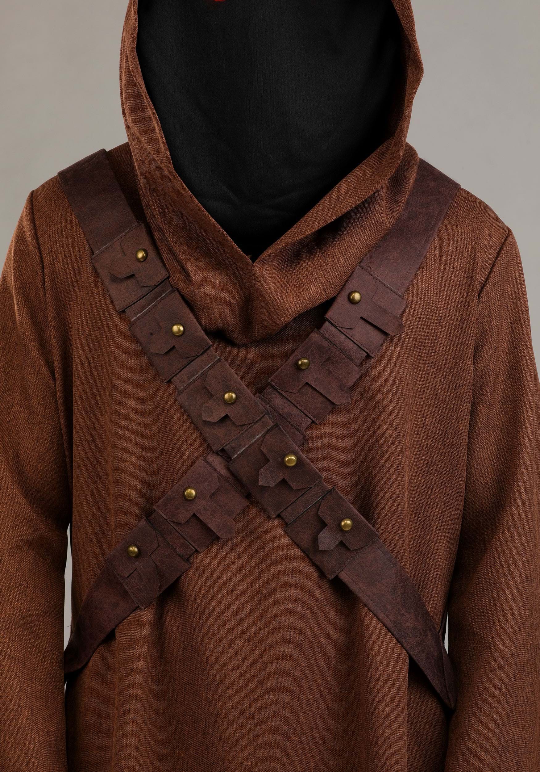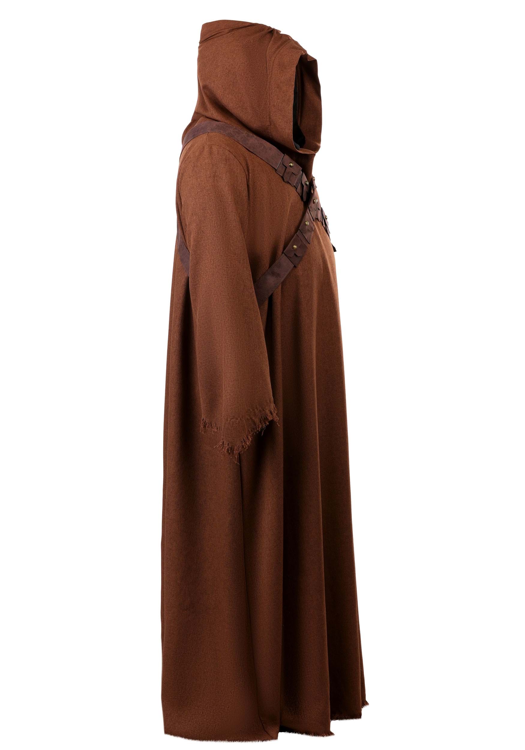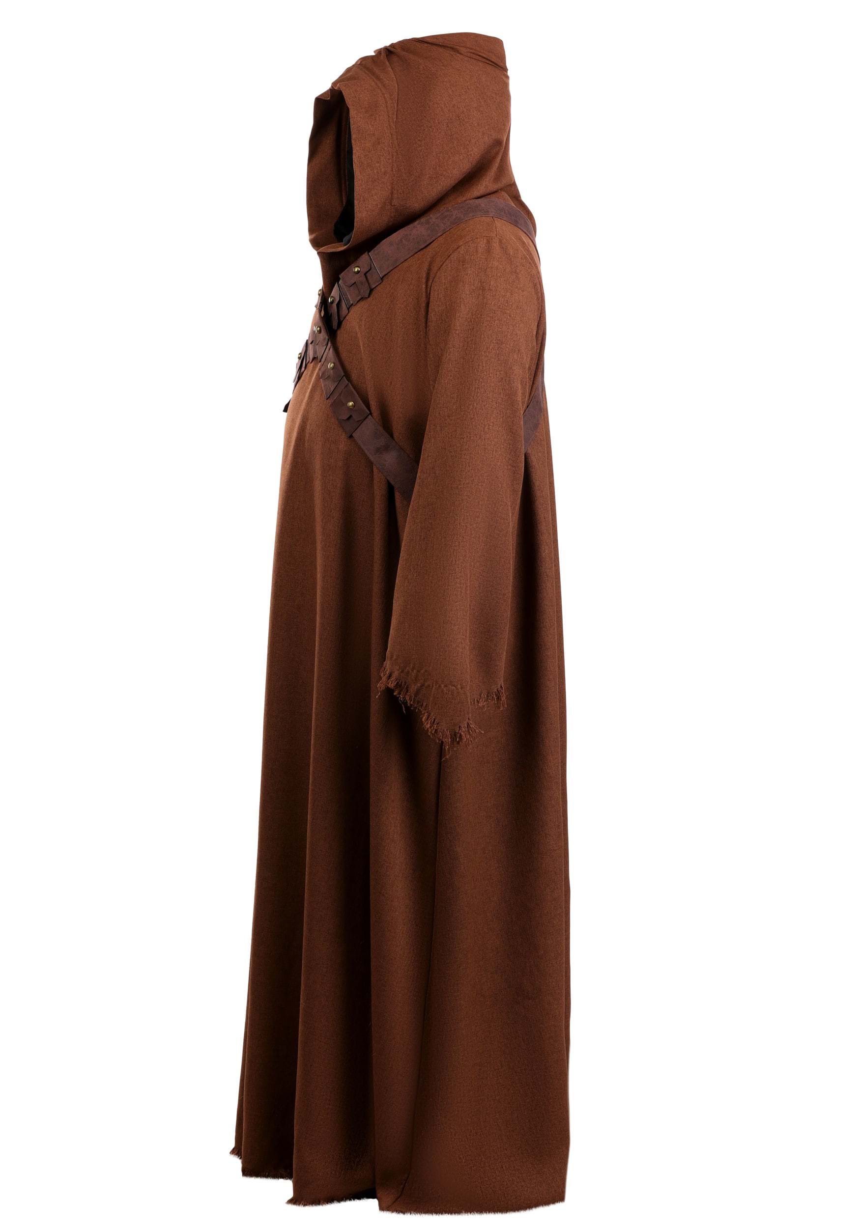 Channel the rugged style of the Jawas with a sturdy, textured tunic crafted from coarse brown fabric. Its raw-edged cuffs and hemline give it an authentic, timeworn feel, as though it's been dragged across the sands of Tatooine. The hook-and-loop fastener at the back of the neck provides a secure and easy fit, making it simple to slip into scavenger mode.