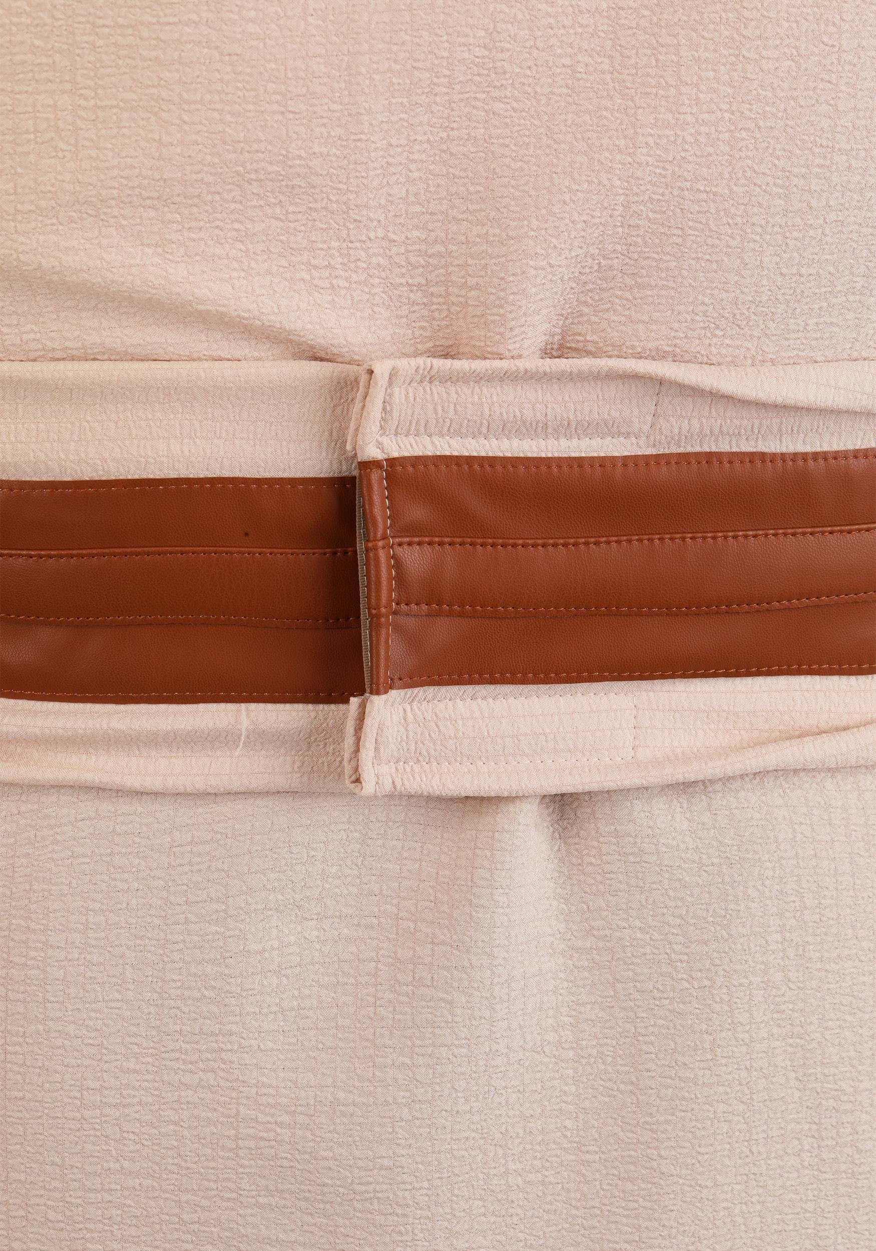 - Gauze fabric tunic has tie closure inside and on outside