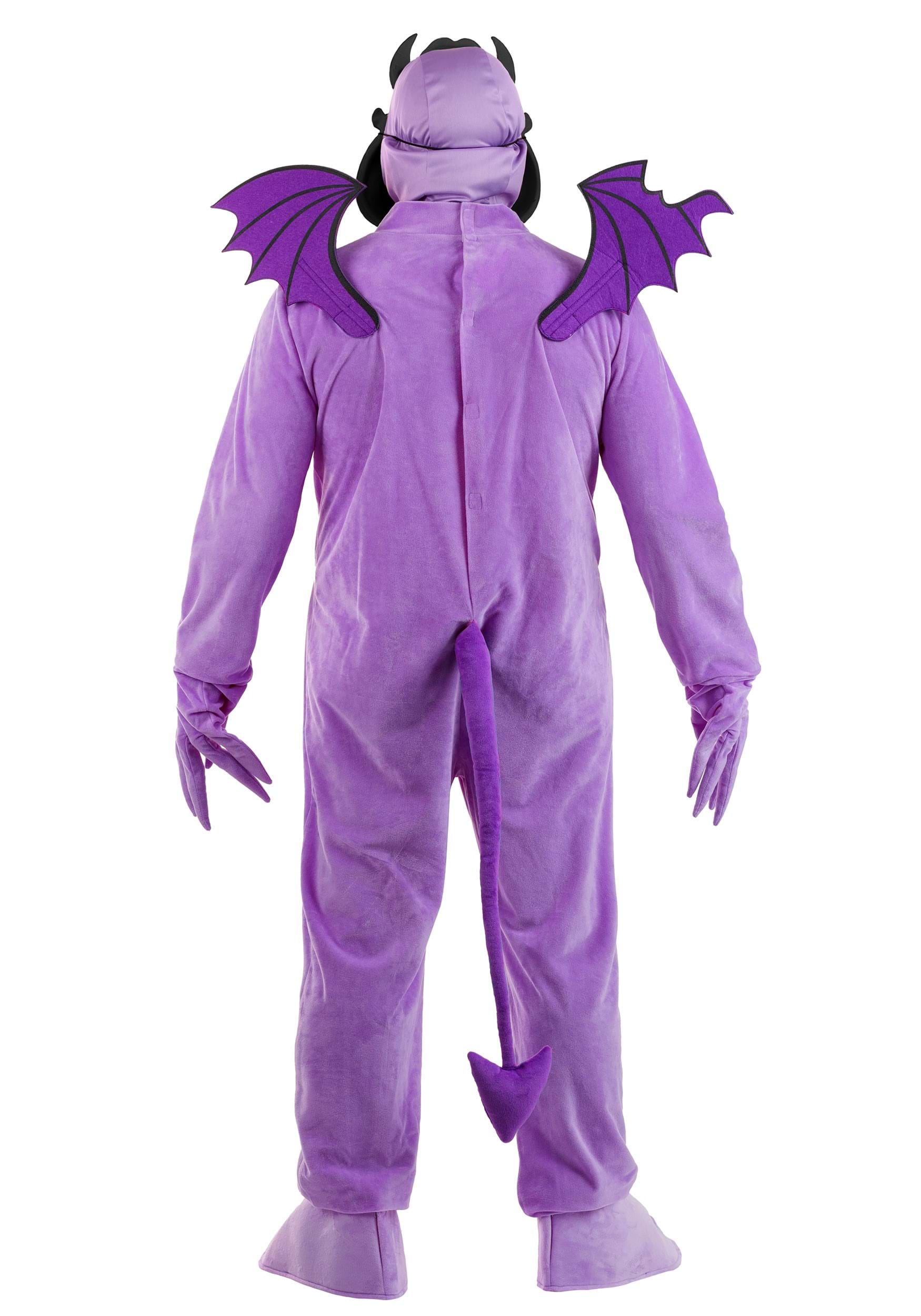 Embrace the goofiness of Pain with this Made By Us design. Crafted from soft, purple velour, this full-body suit has all of Pain's quirky features: a round belly with embroidered details, oversized gloves, and a mischievous pointed tail. The character hood and mask capture his over-the-top expression, while the felt bat wings on the back add a comical touch.