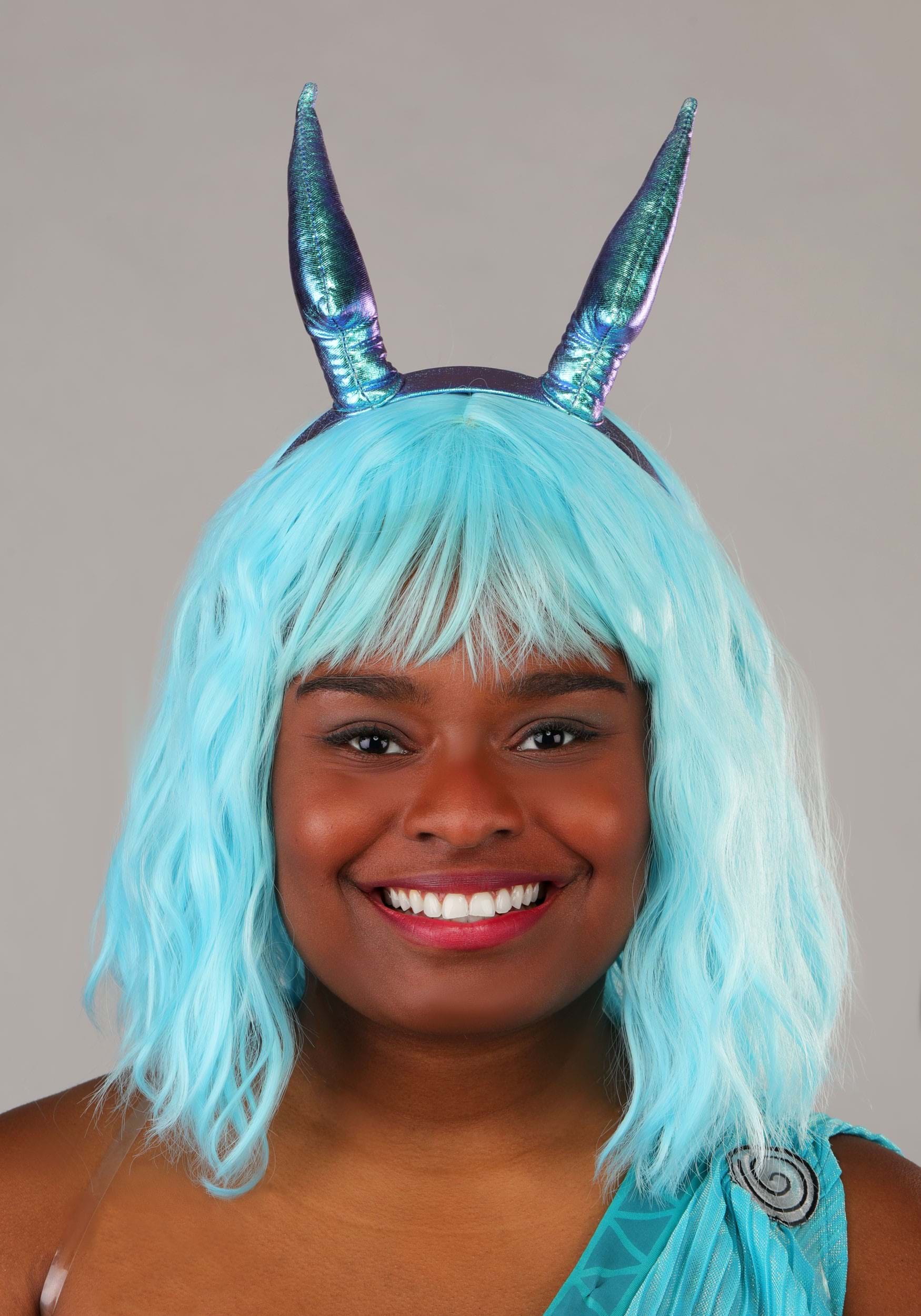 - Fiber filled horns on plastic headband