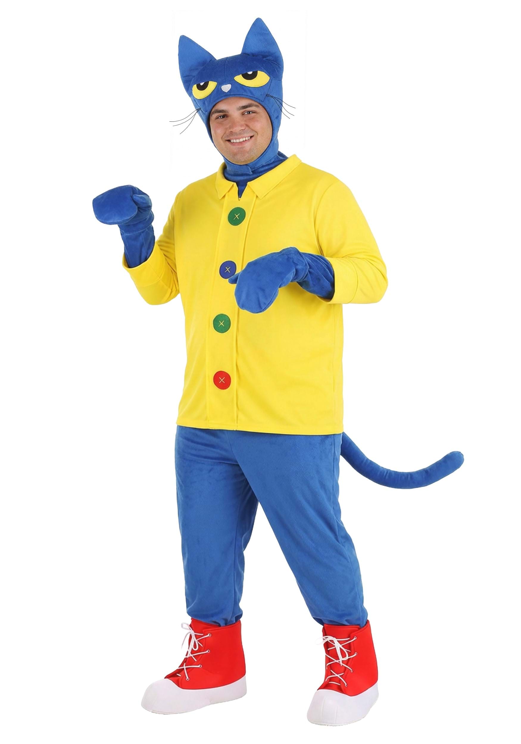 Calling all plus-size Halloween enthusiasts! Get ready to strut your stuff in this Plus Size Adult Pete the Cat Costume. Made with 100% polyester jersey knit and velour fabrics, this costume is comfortable and stylish, perfect for a night of Halloween fun!