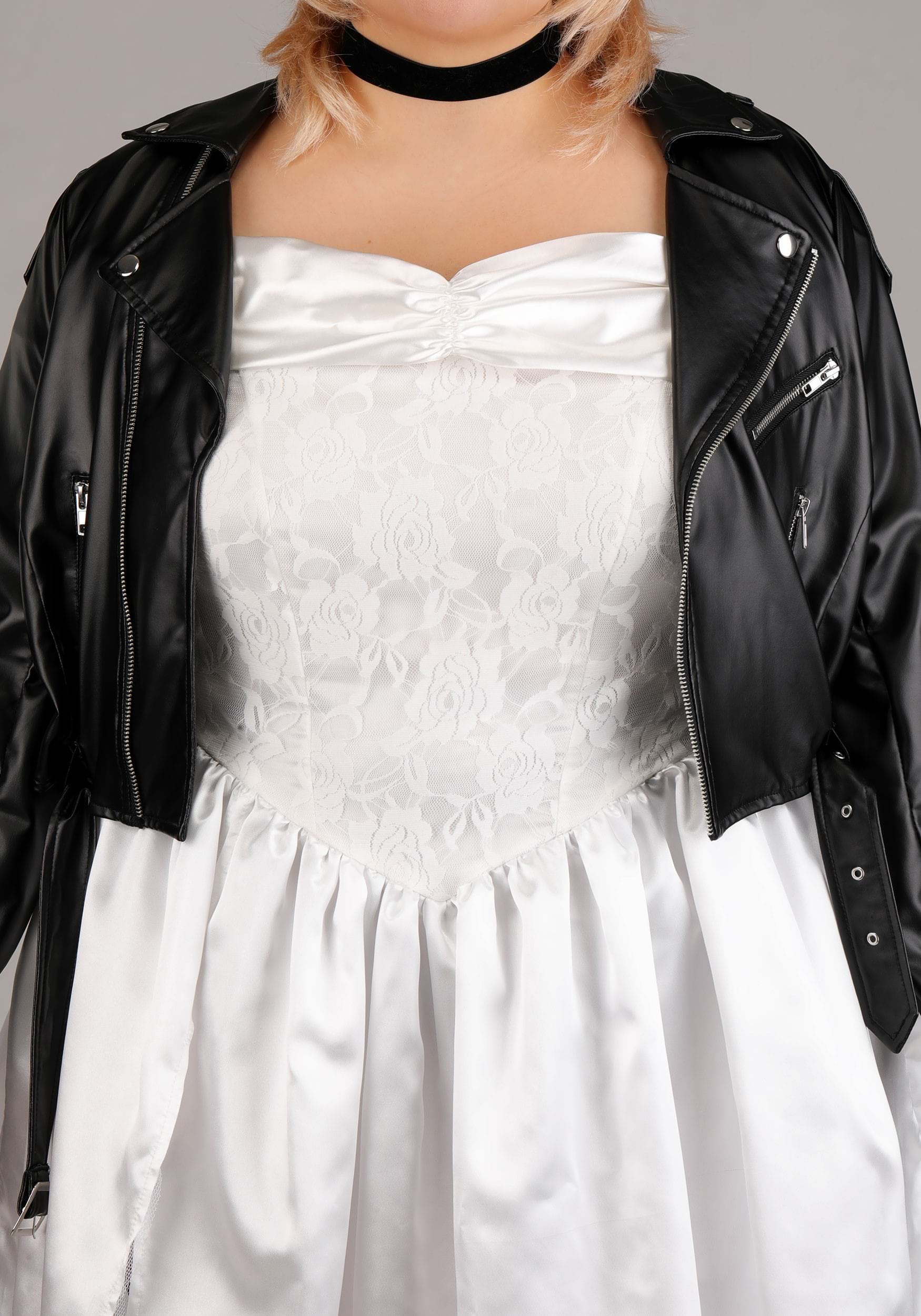 This is an exclusive Plus Size Brutal Bride Doll Women's Costume.