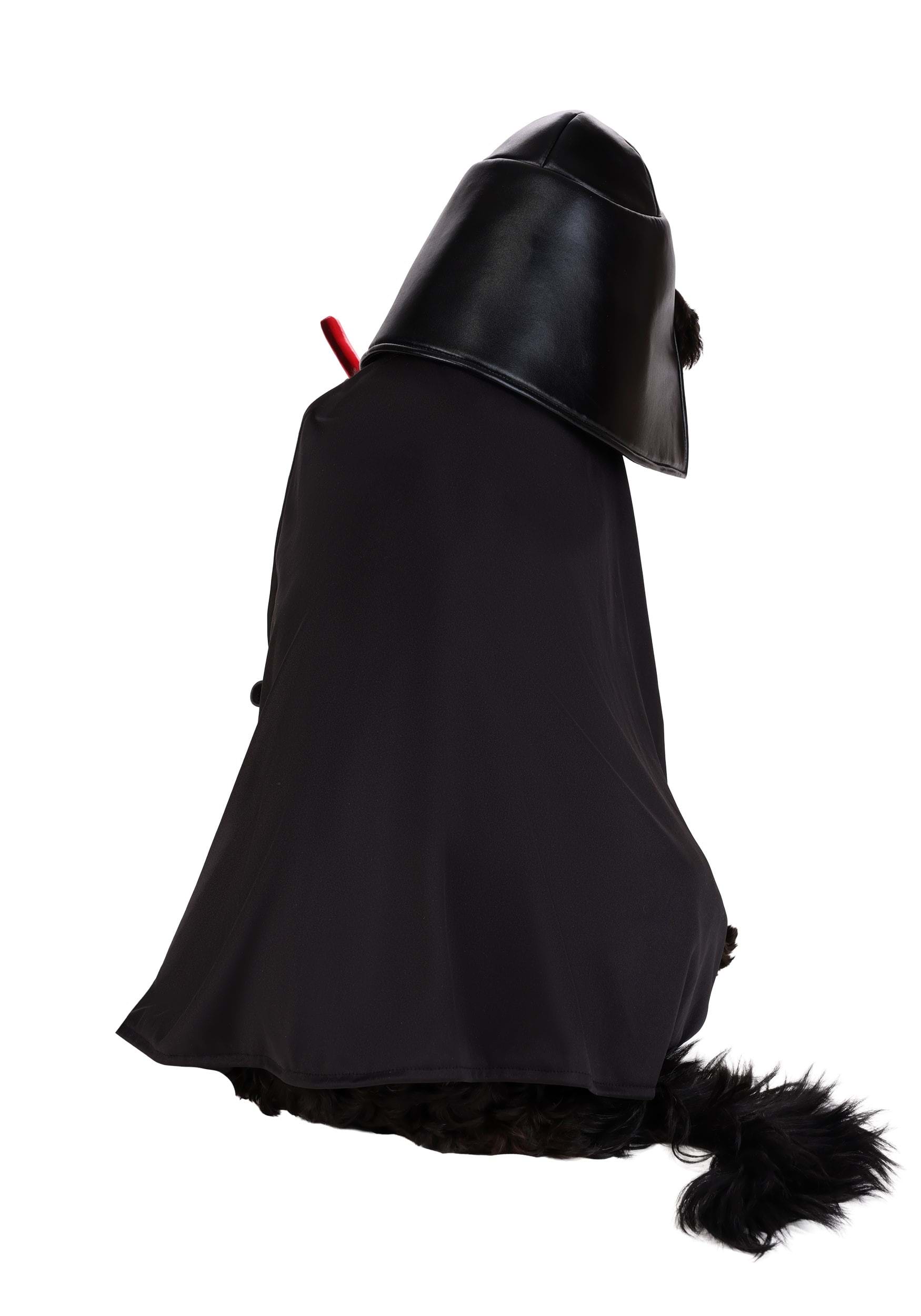 Topping it all off is the molded Darth Vader helmet. Made from shiny black vinyl with a foam-backed structure, it keeps its signature shape while staying lightweight. It secures with an elastic strap under the chin, completing the transformation into the Emperor's most loyal (and now furriest) enforcer.
