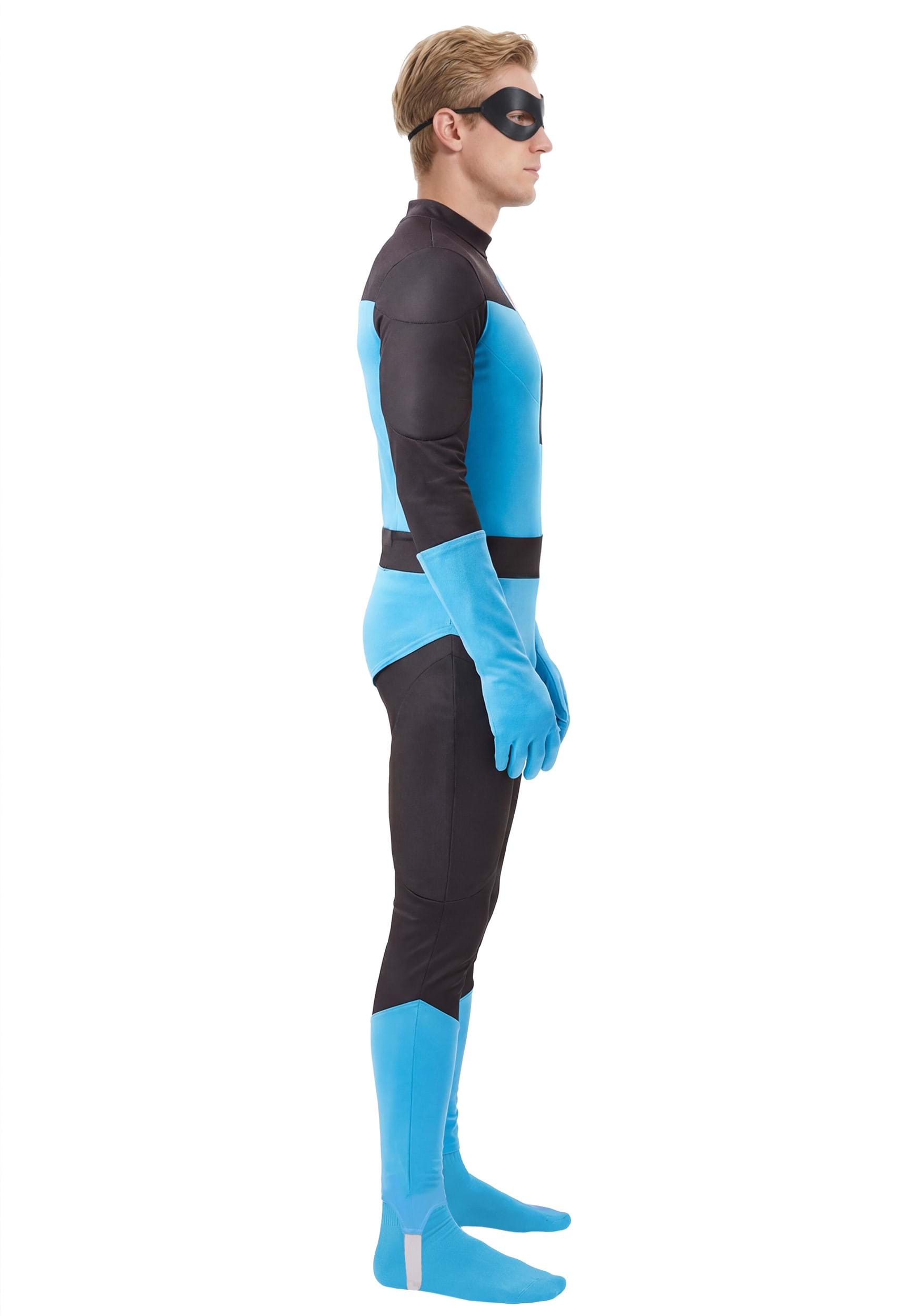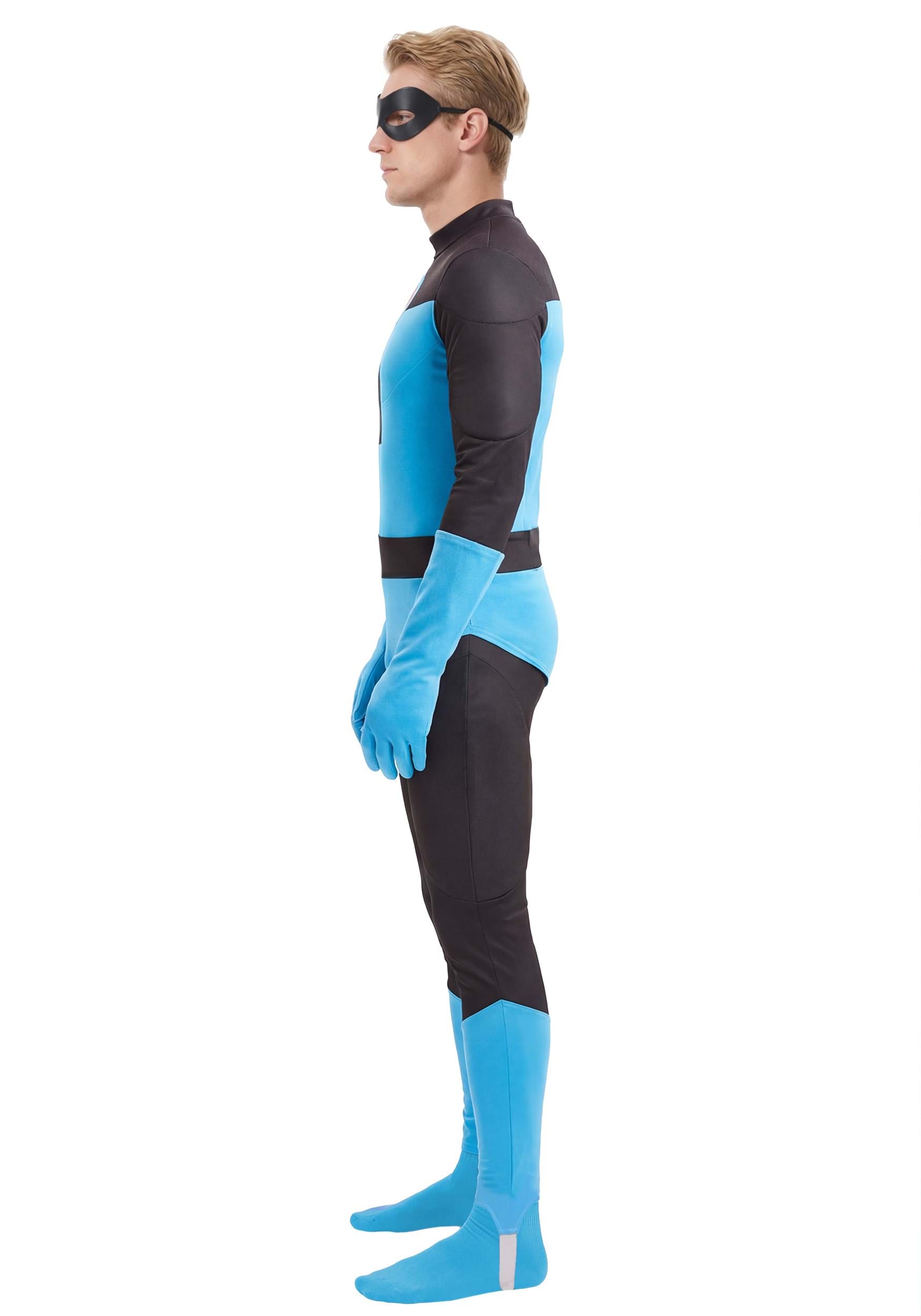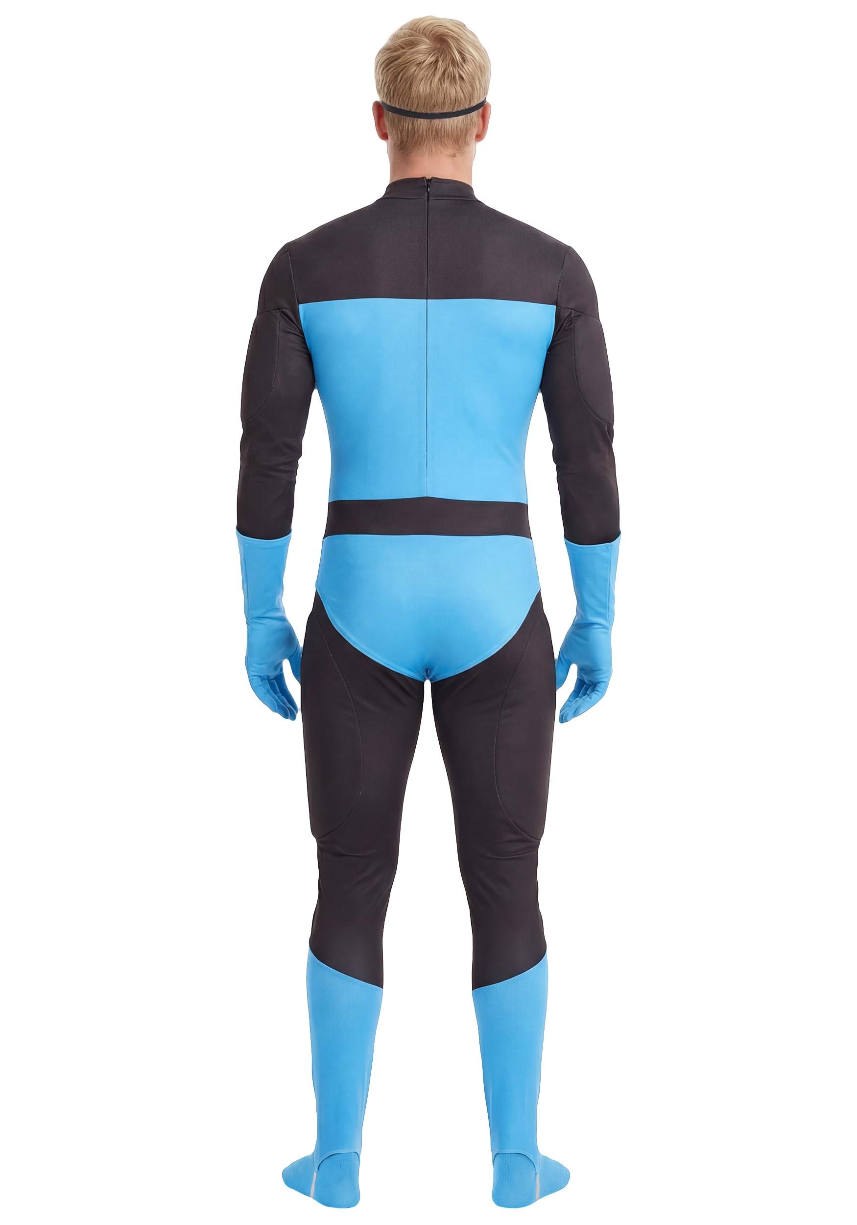 This is an exclusive Pixar The Incredibles Men's Mr. Incredible Blue Suit Costume.
