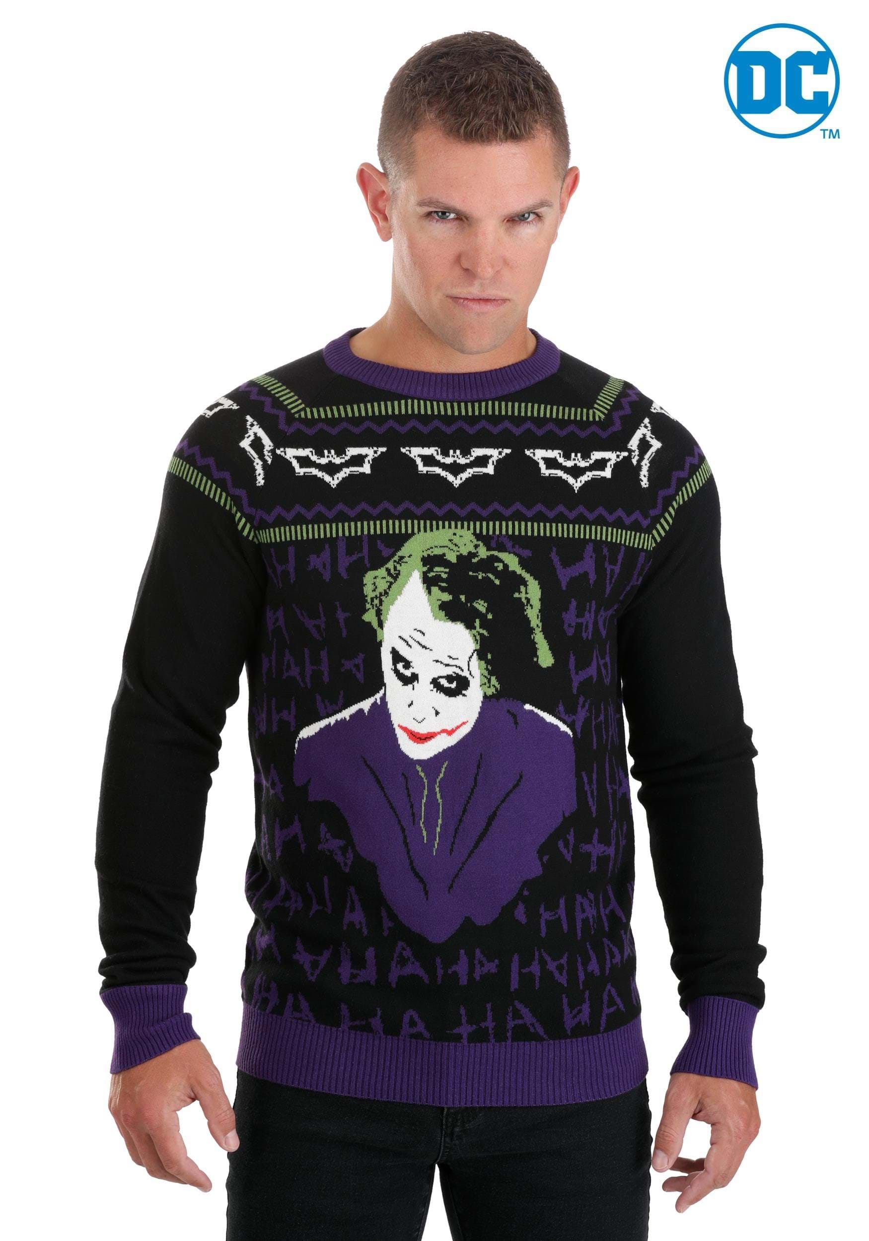 Why settle for a traditional holiday sweater when you can embrace your inner Joker? This unique and eye-catching sweater is the perfect way to add a touch of villainous style to your festive wardrobe. Whether you're a fan of The Dark Knight or just love all things Joker, this sweater is a must-have for any true fan.