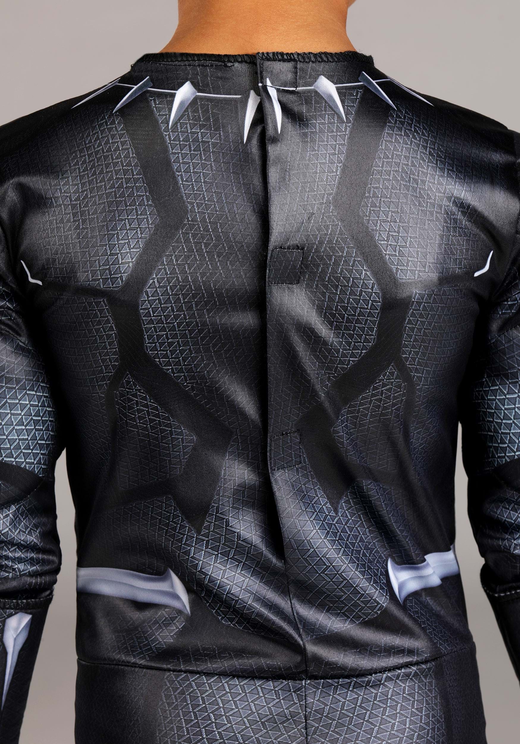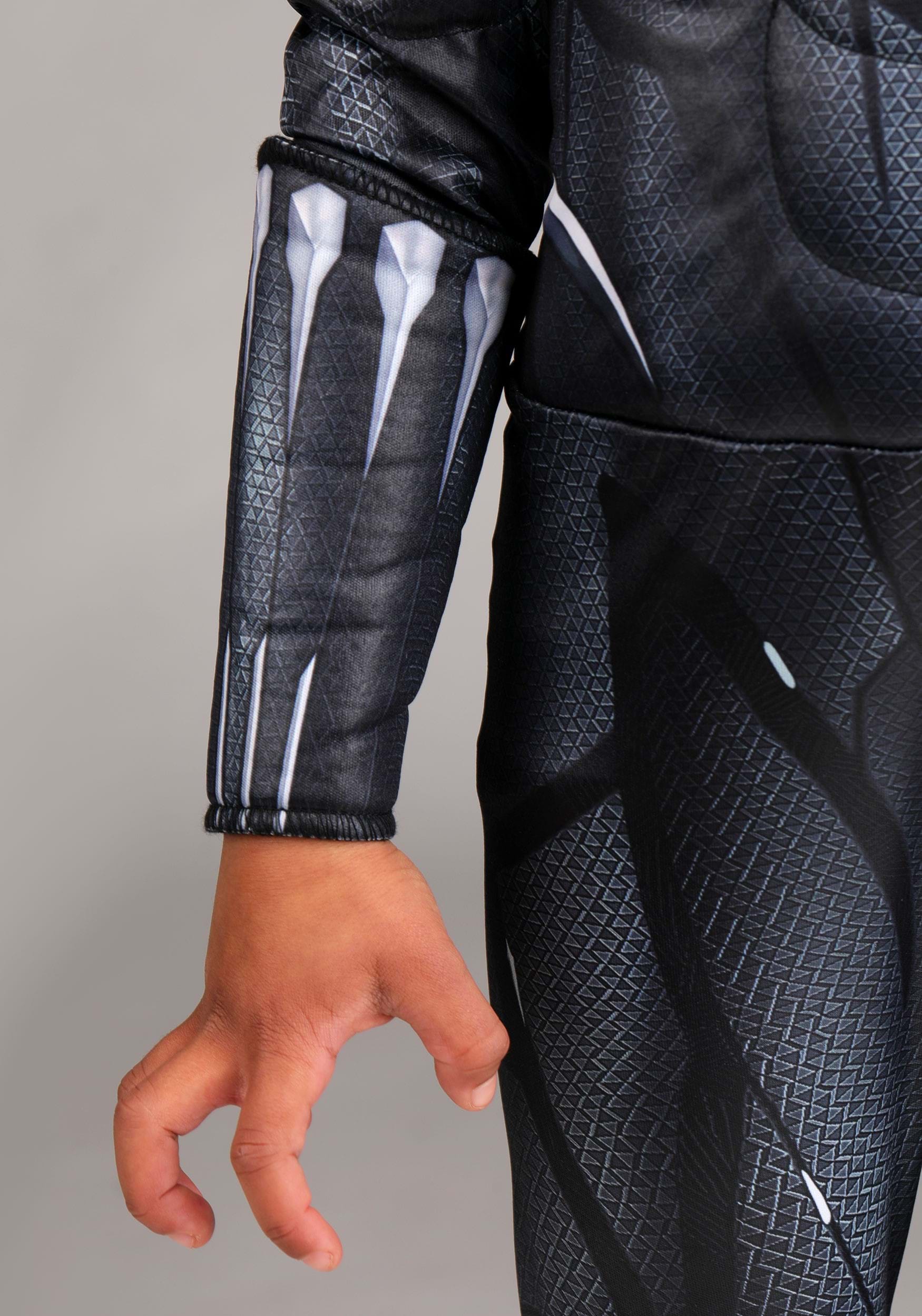 The black jumpsuit is made from soft polyester and features printed textures and silver detailing that mimic the high-tech vibranium suit seen on screen. Muscle padding in the chest gives your tiny warrior a bold, powerful appearance worthy of a true Avenger—no heart-shaped herb required.