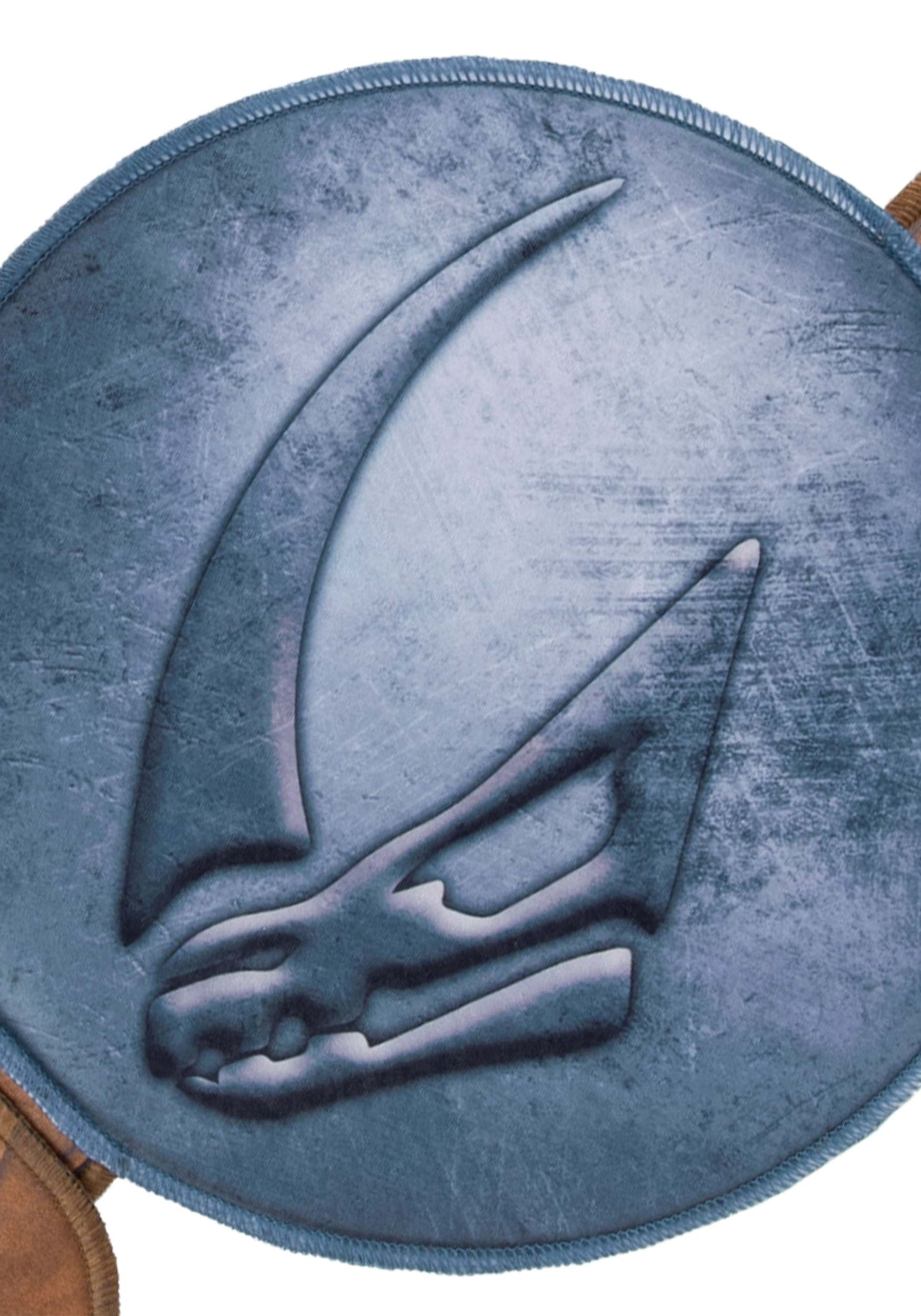 Strapped across the chest with a brown belt and simple fastener sits the standout detail of this costume: a sculpted armor piece bearing the iconic Mandalorian symbol on its face. This metallic-toned shield immediately signals to fellow fans exactly who this tiny traveler is meant to be, adding a layer of authenticity that elevates the whole look beyond a simple robe.