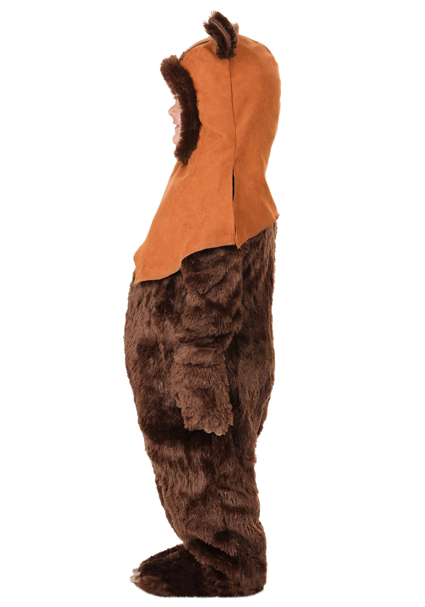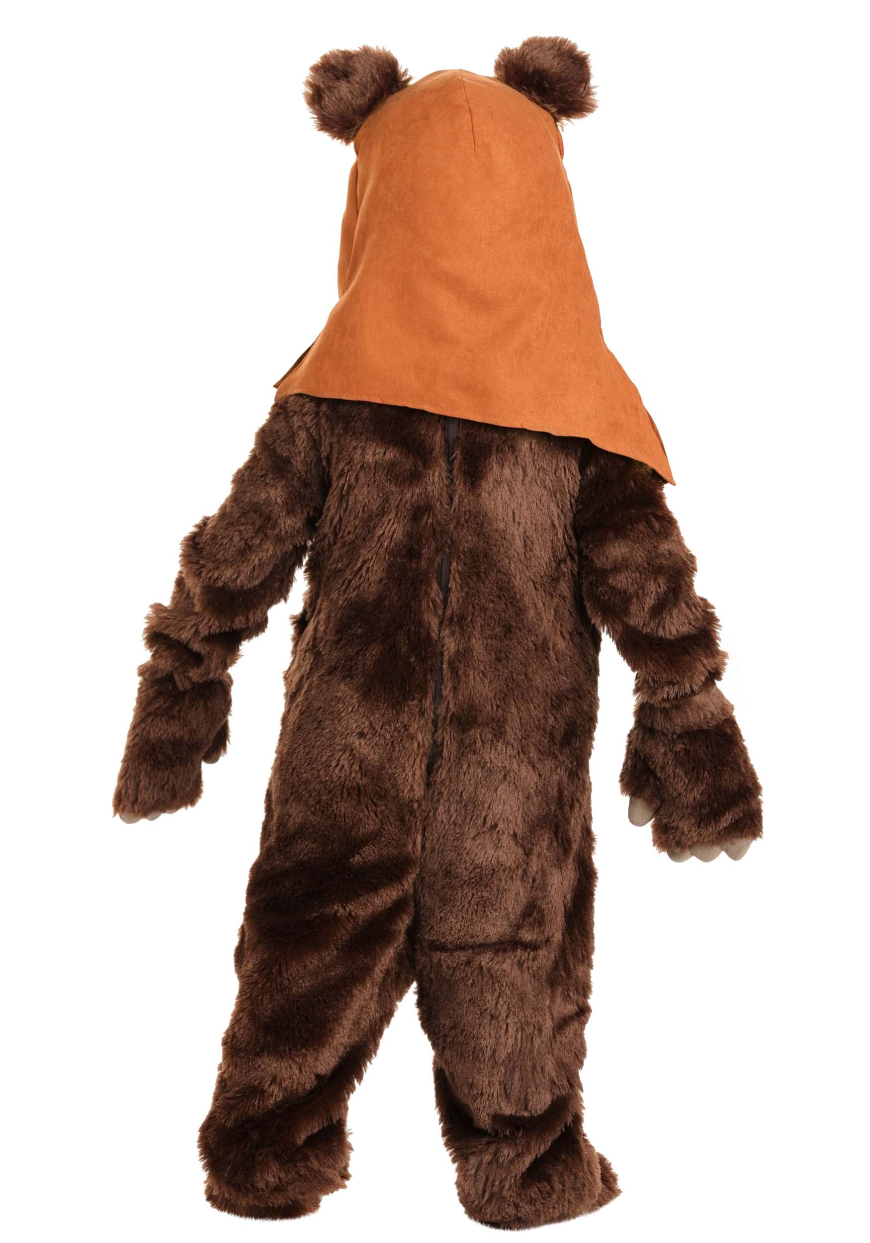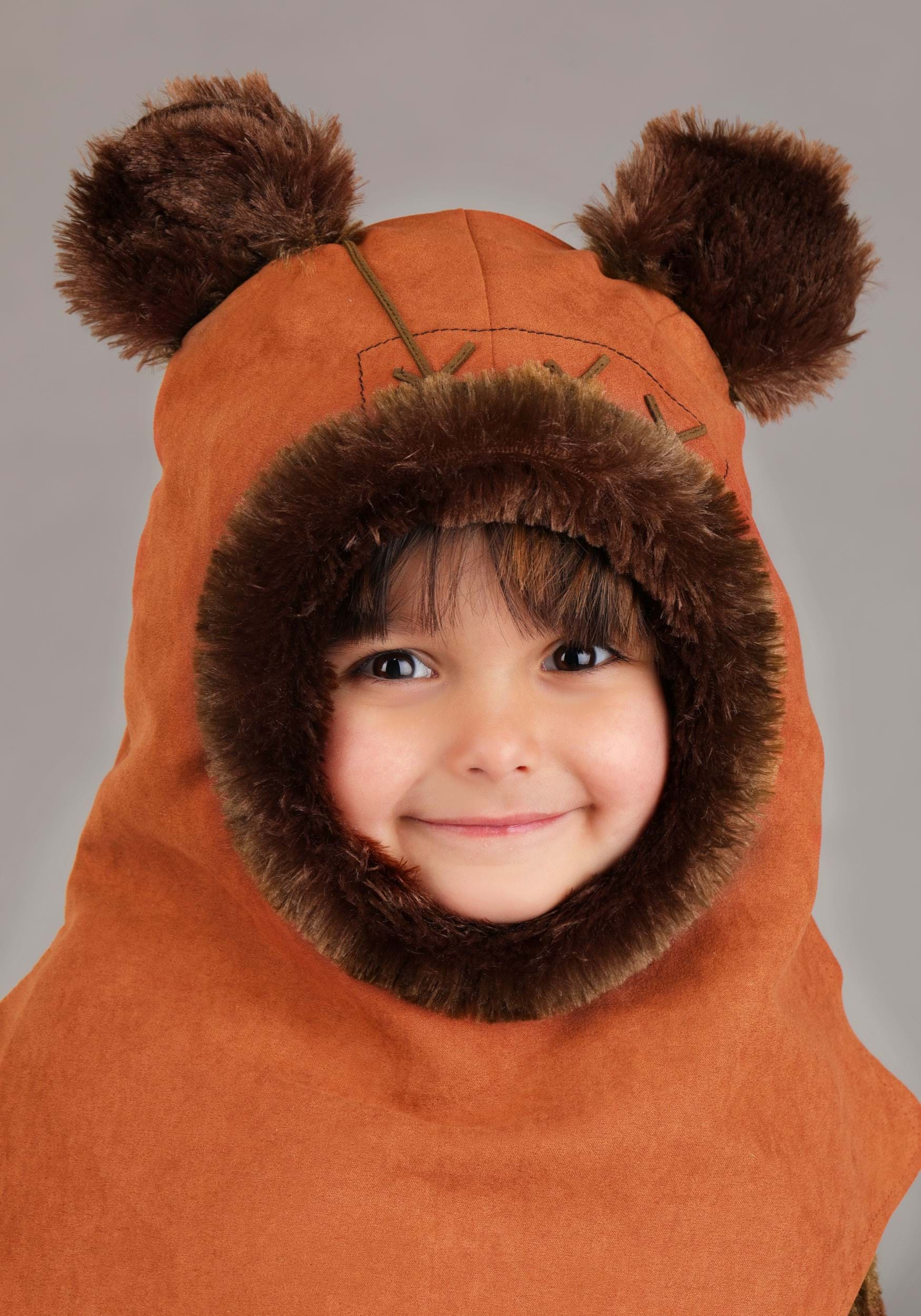 The faux suede hood pulls the whole look together, with its rough-cut edges, soft trim, and perky Ewok ears that bounce with every step. Designed to slip easily over the head and secure with a simple cord, it offers warmth without overheating thanks to its jersey lined interior.