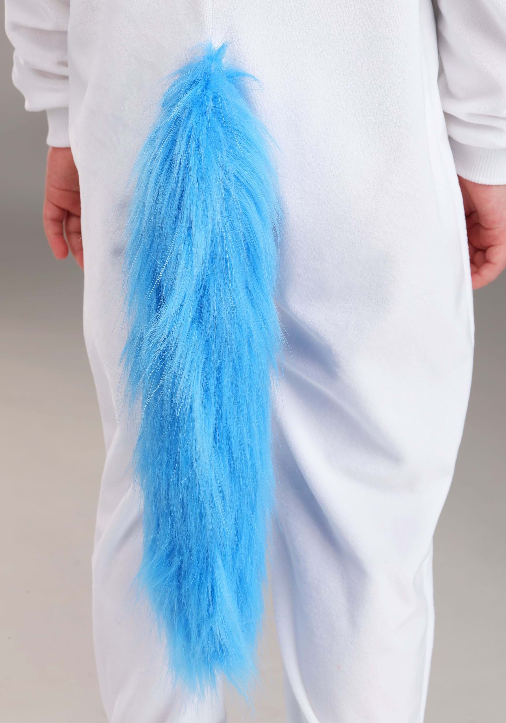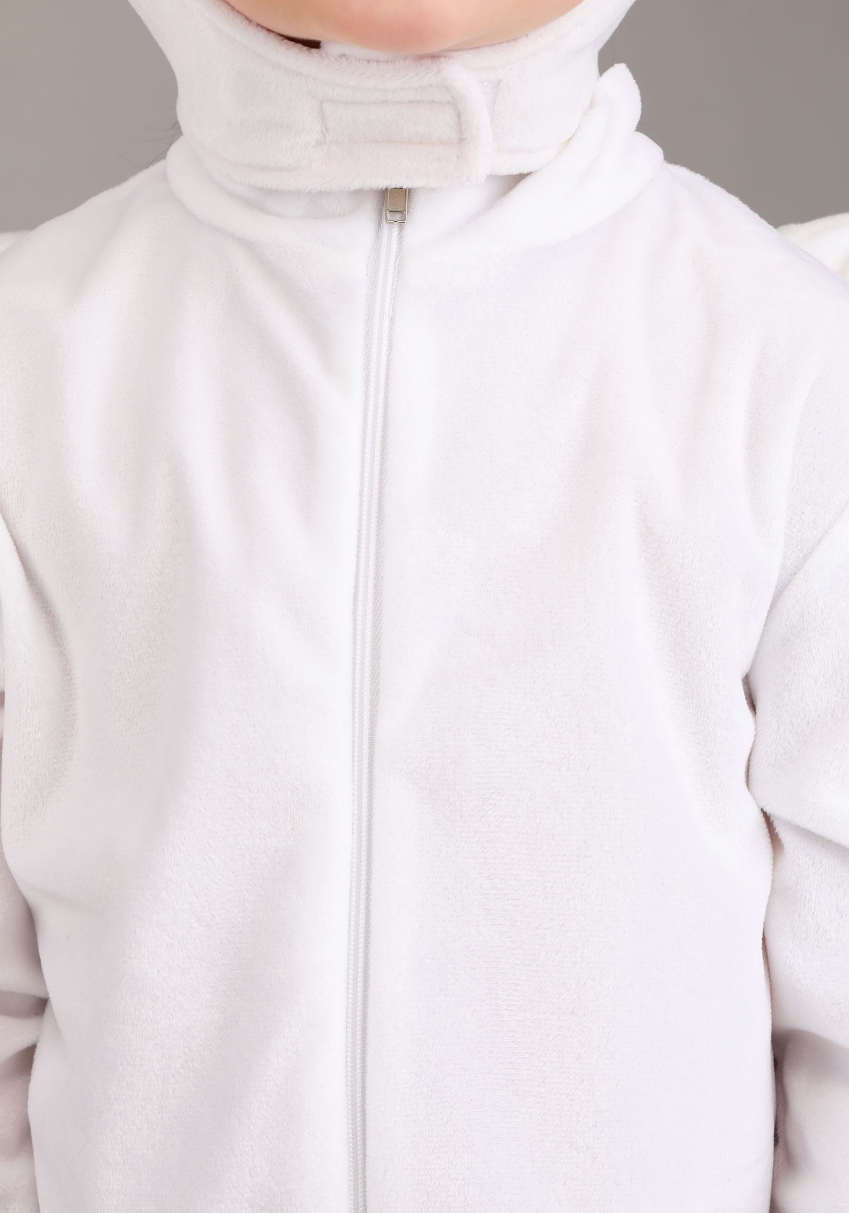 The white cuddle-plush jumpsuit zips in the front for easy changes and is designed with rib-knit cuffs for a snug fit. Glittery wings attach with hook and loops and feature a 3D texture for extra flair. The minky tail adds a soft, playful detail. Topped with a headpiece featuring embroidered facial details, floppy ears, and a matching minky mane, this outfit is as whimsical as it is comfy!