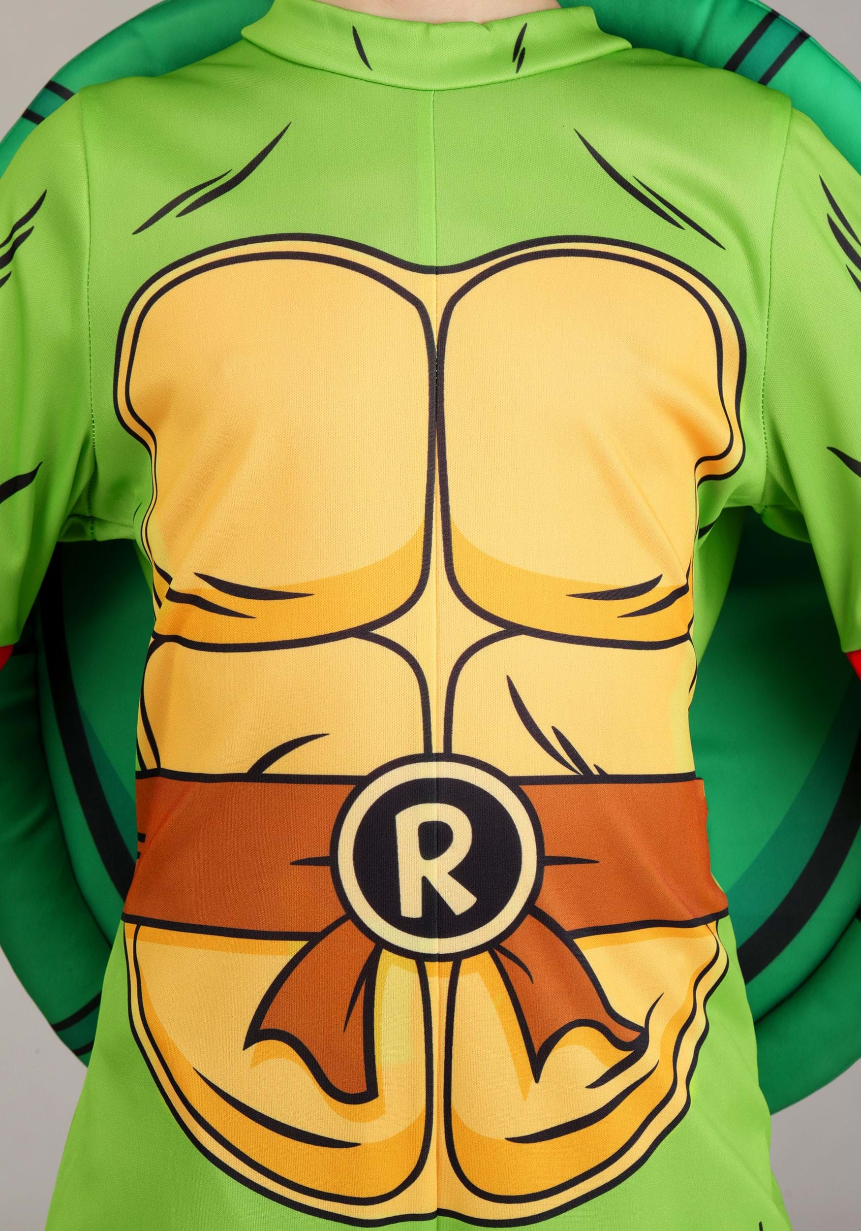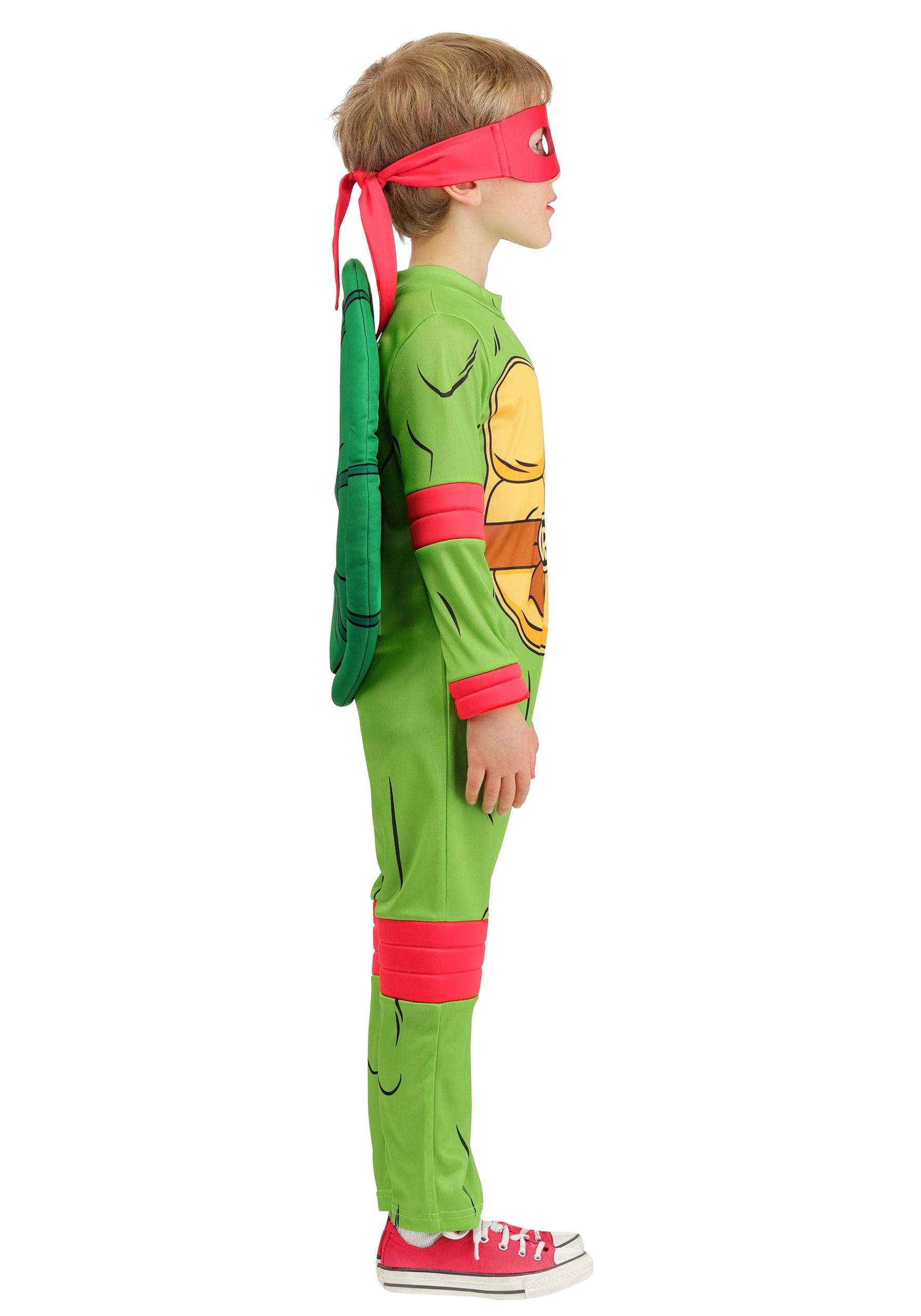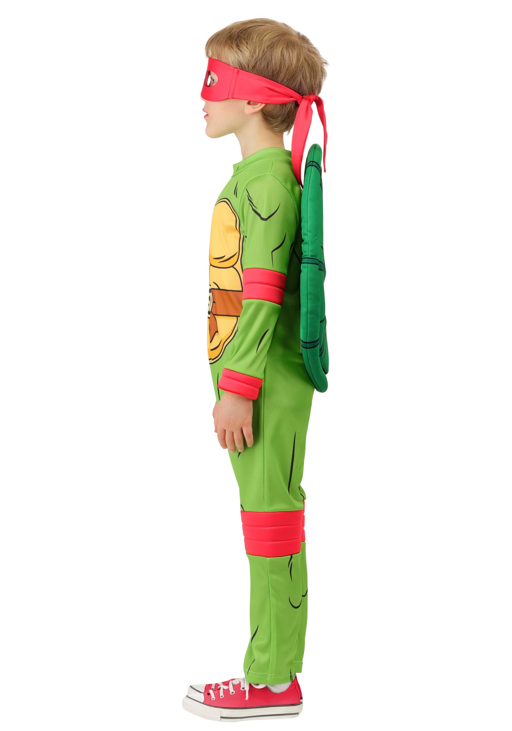 Designed with soft polyester fabric and toddler comfort in mind, the jumpsuit features a back zipper for quick changes and an elastic waistband that keeps little ninjas moving freely. The front is printed with Raphael’s iconic chest plate and belt, while attached red elbow pads, wrist ties, and kneepads give this costume its unmistakable turtle flair. It’s a one-piece suit of turtle armor that’s as comfy as it is cool.