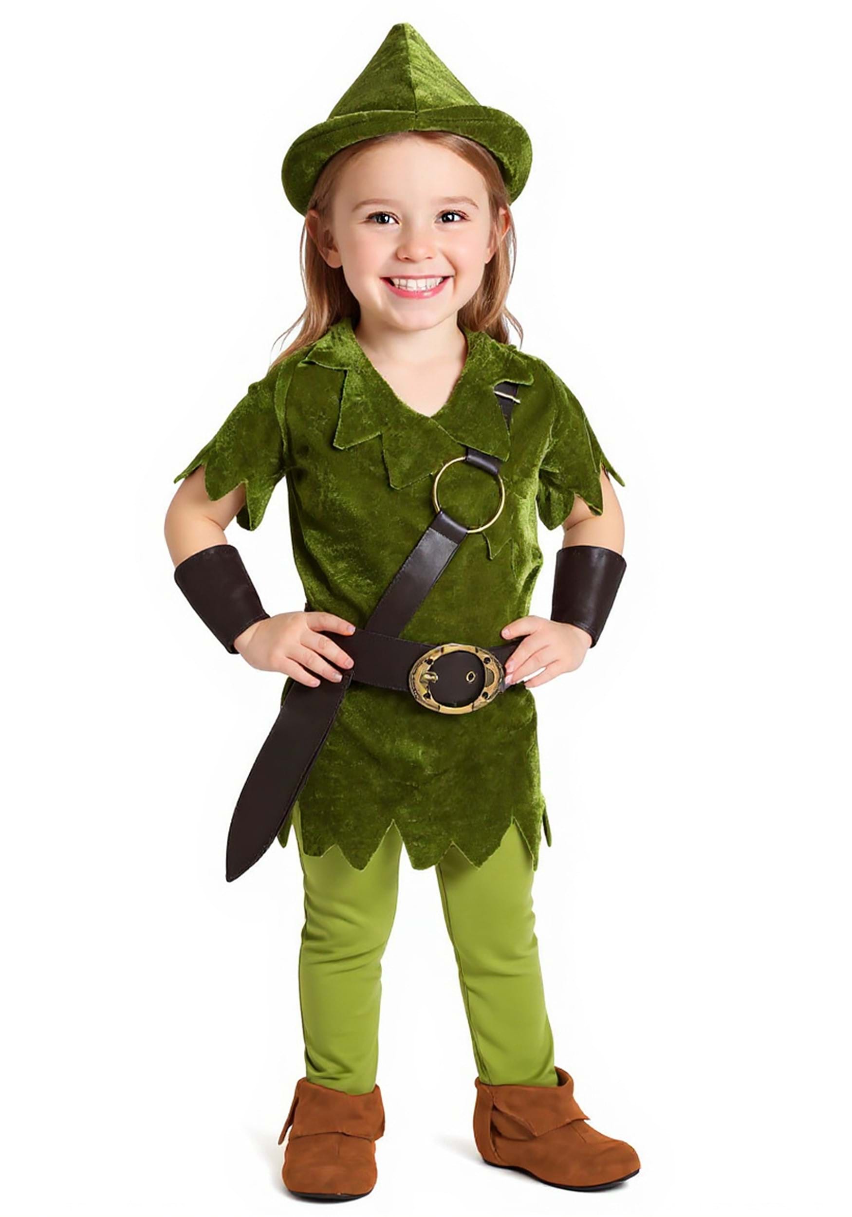 Get ready to take flight to Neverland with this Boy's Classic Peter Pan Toddler Costume! Made from 100% polyester velvet, interlock knit, and faux leather, this costume is perfect for your little adventurer. Whether they're off to a Halloween party or just playing make-believe, this costume will transport them to the magical world of Peter Pan.
