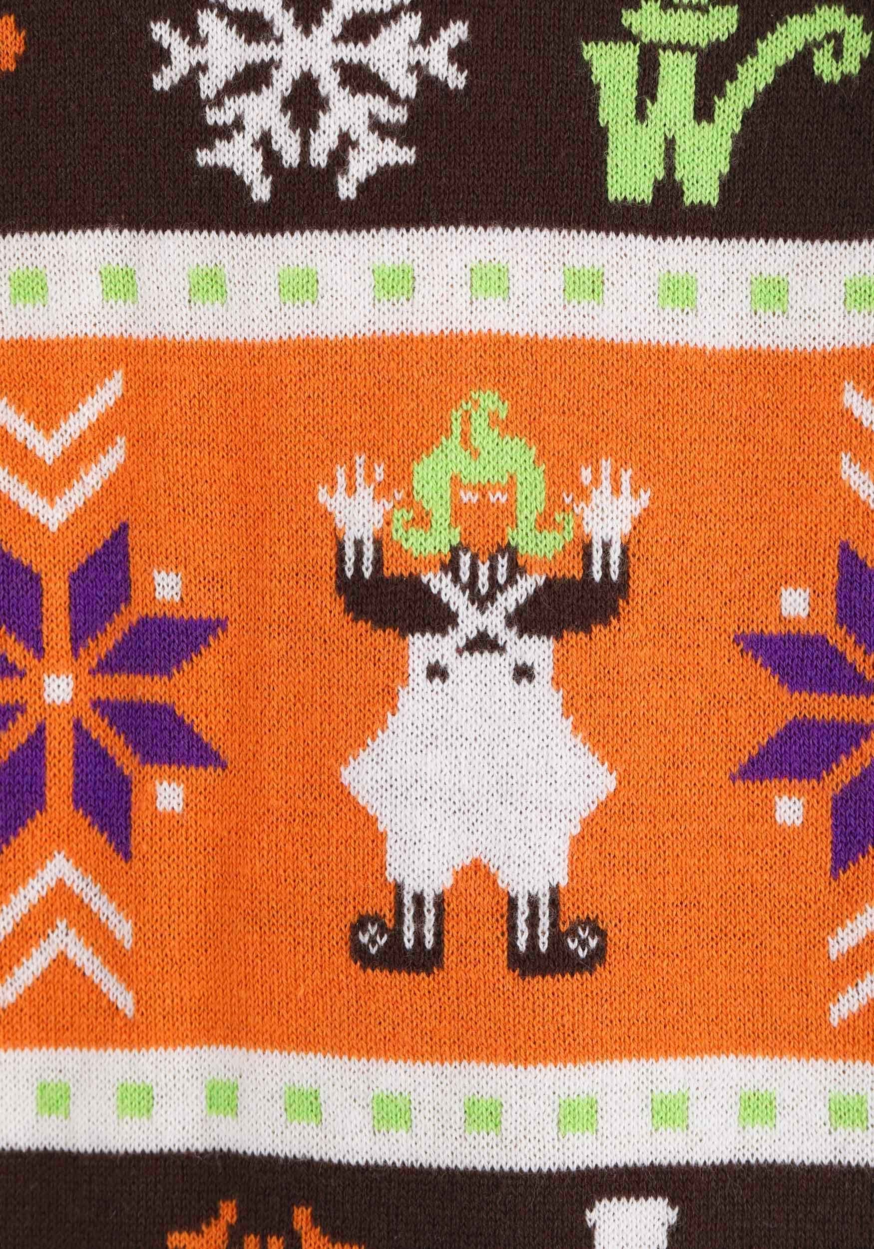 Not only does this sweater look good, but it also feels amazing to wear. The rib knit neck band, waistband, and cuffs ensure a snug and comfortable fit, while adding a touch of retro charm to your ensemble. Whether you're attending a Halloween party or simply lounging around, this sweater is the perfect combination of comfort and style.