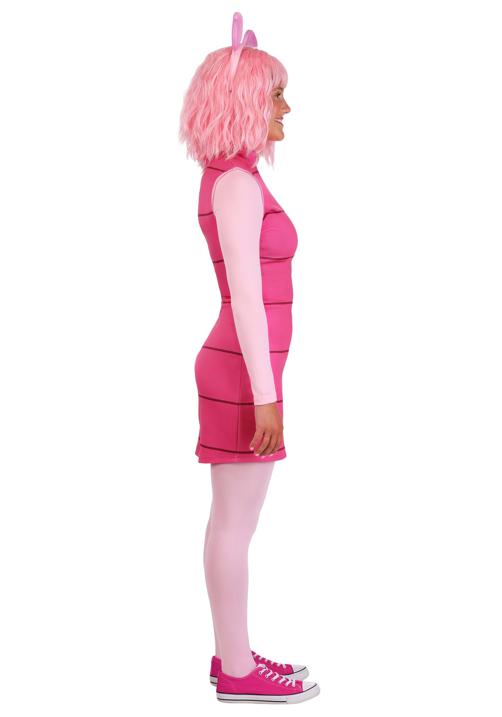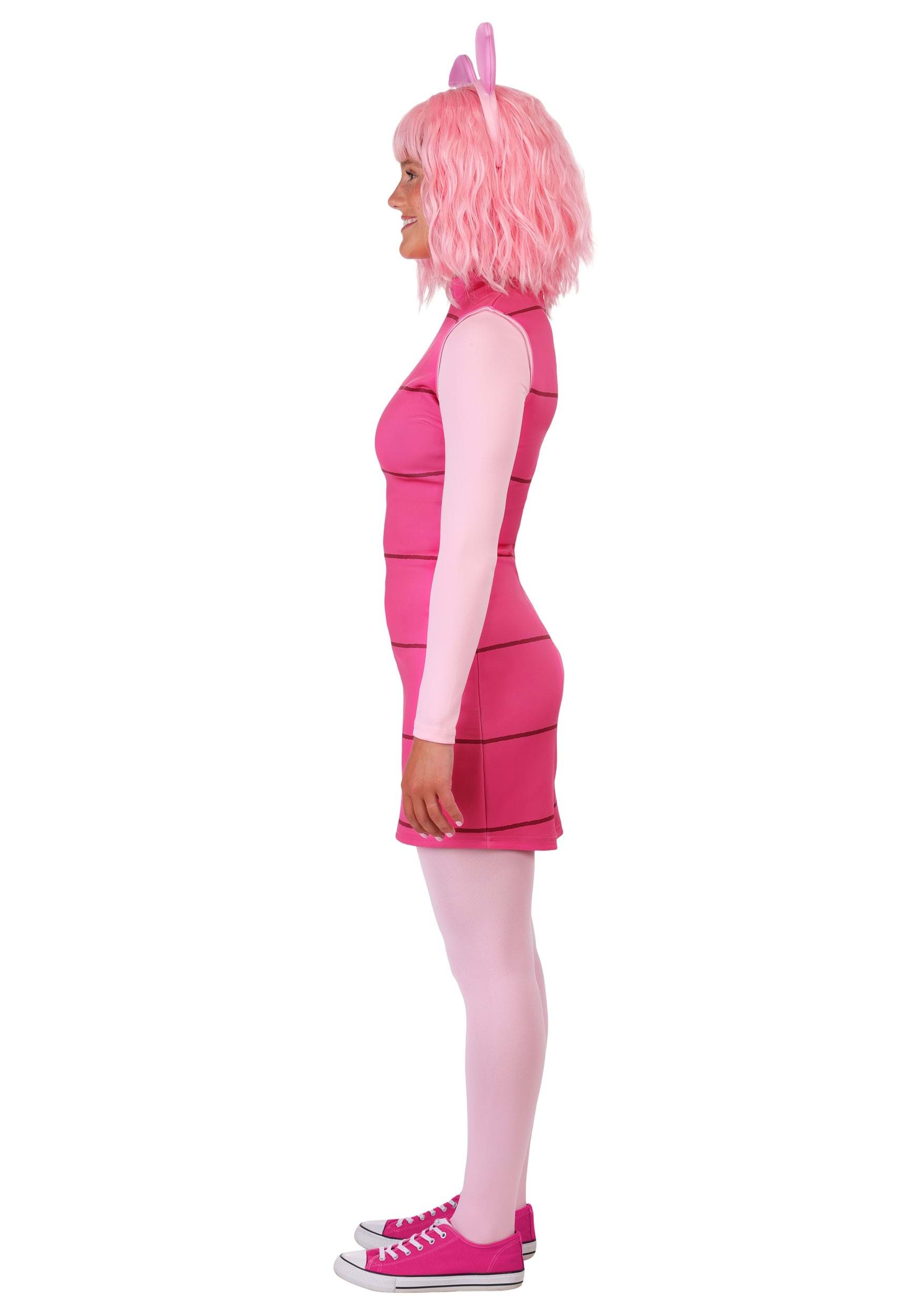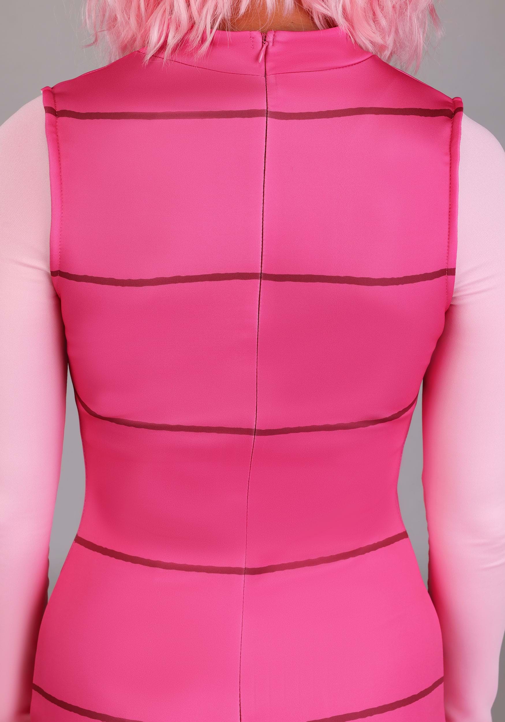 Our Women's Piglet outfit features a pink striped dress that's crafted from soft jersey knit fabric. The long sleeve dress pairs perfectly with coordinating tights for a cozy fit. Plush piglet ears on the plastic headband adds an essential character detail, while the zip-up back makes this costume an easy to wear choice for any occasion.