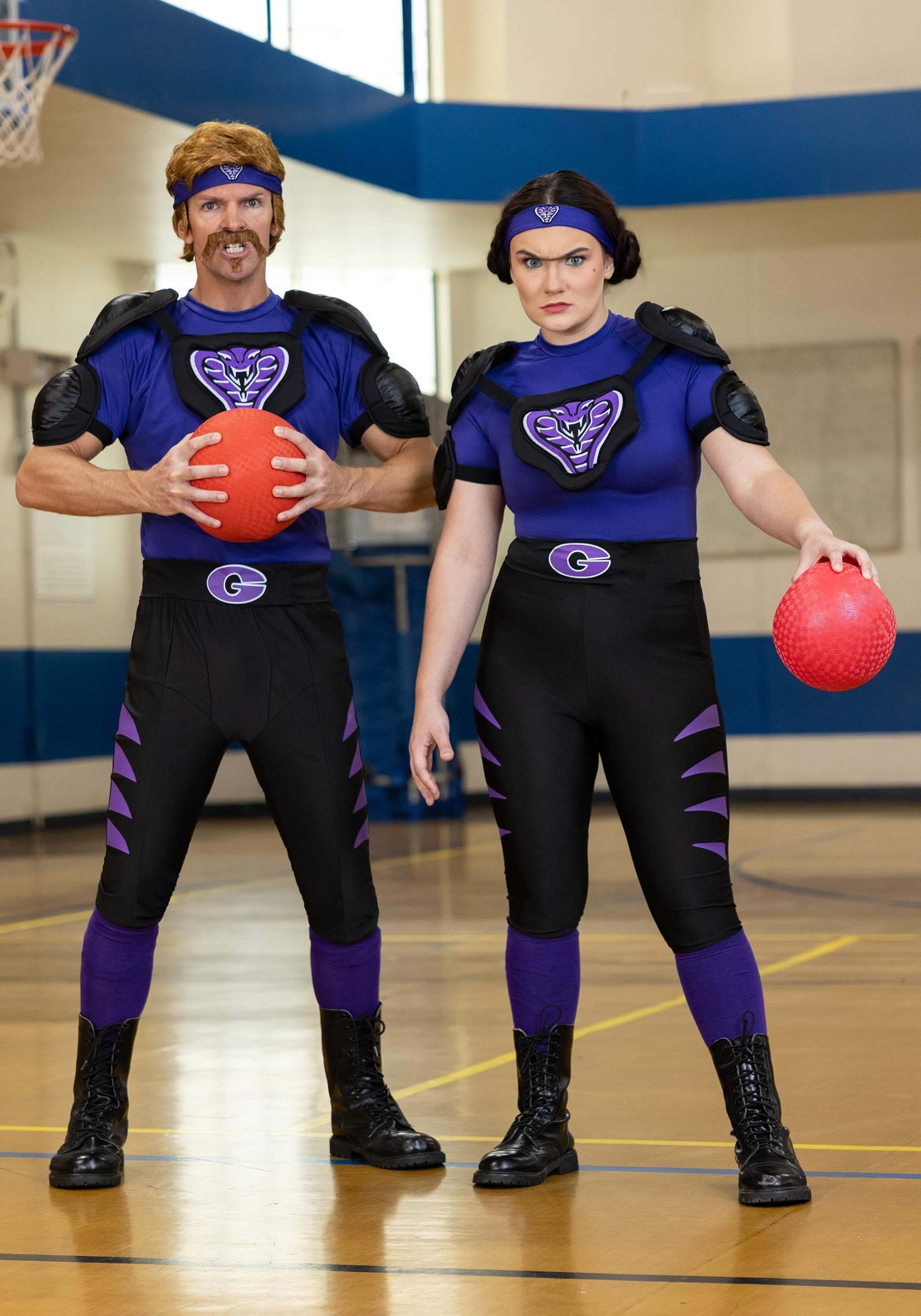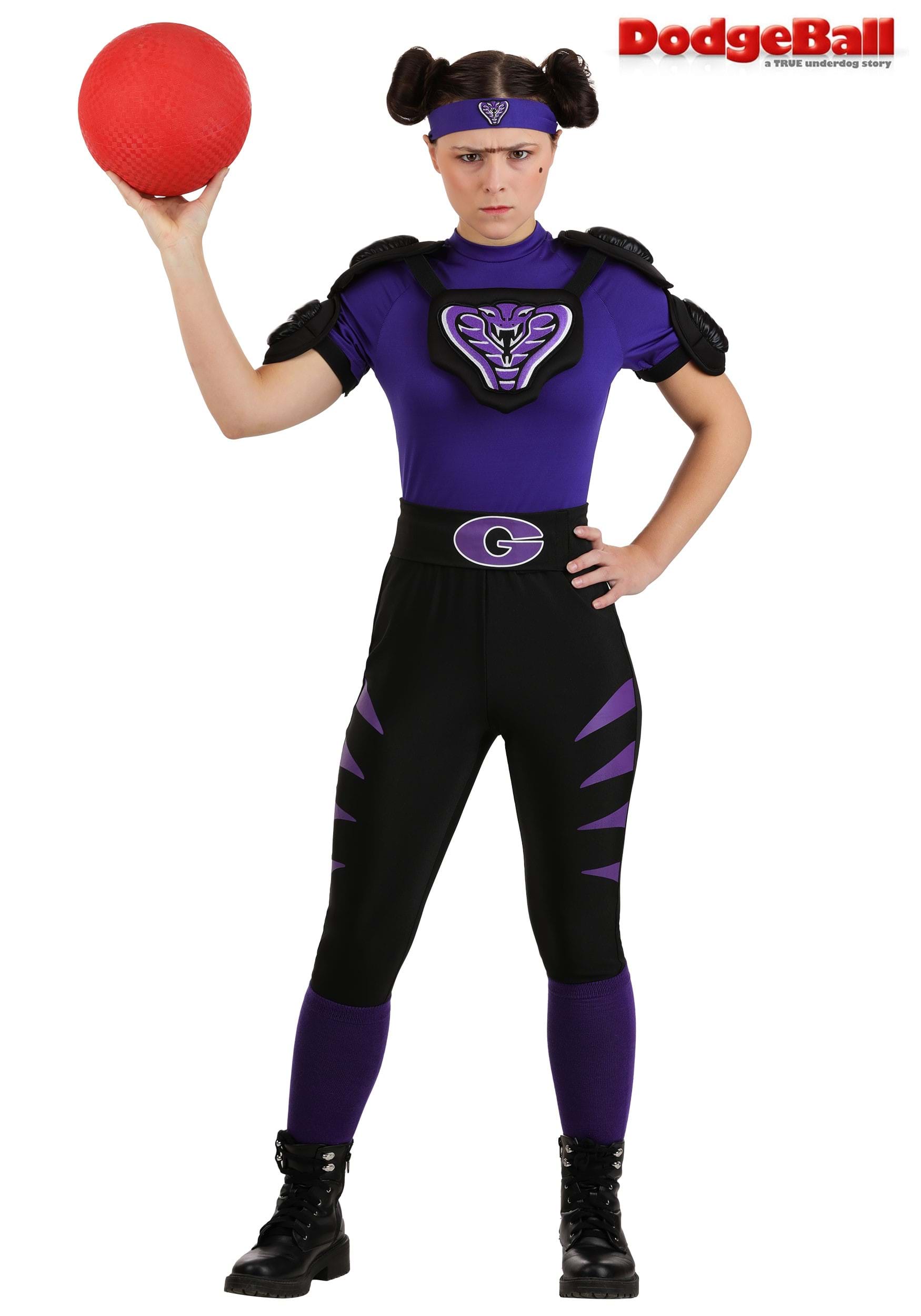 Dominate the dodgeball arena and the costume party with the Women's Dodgeball Purple Cobra Costume! This officially licensed ensemble transforms you into a fierce member of Globo Gym's infamous Purple Cobras. With bold details and a striking design straight from Dodgeball: A True Underdog Story, this costume makes you ready to win Halloween or any themed event.