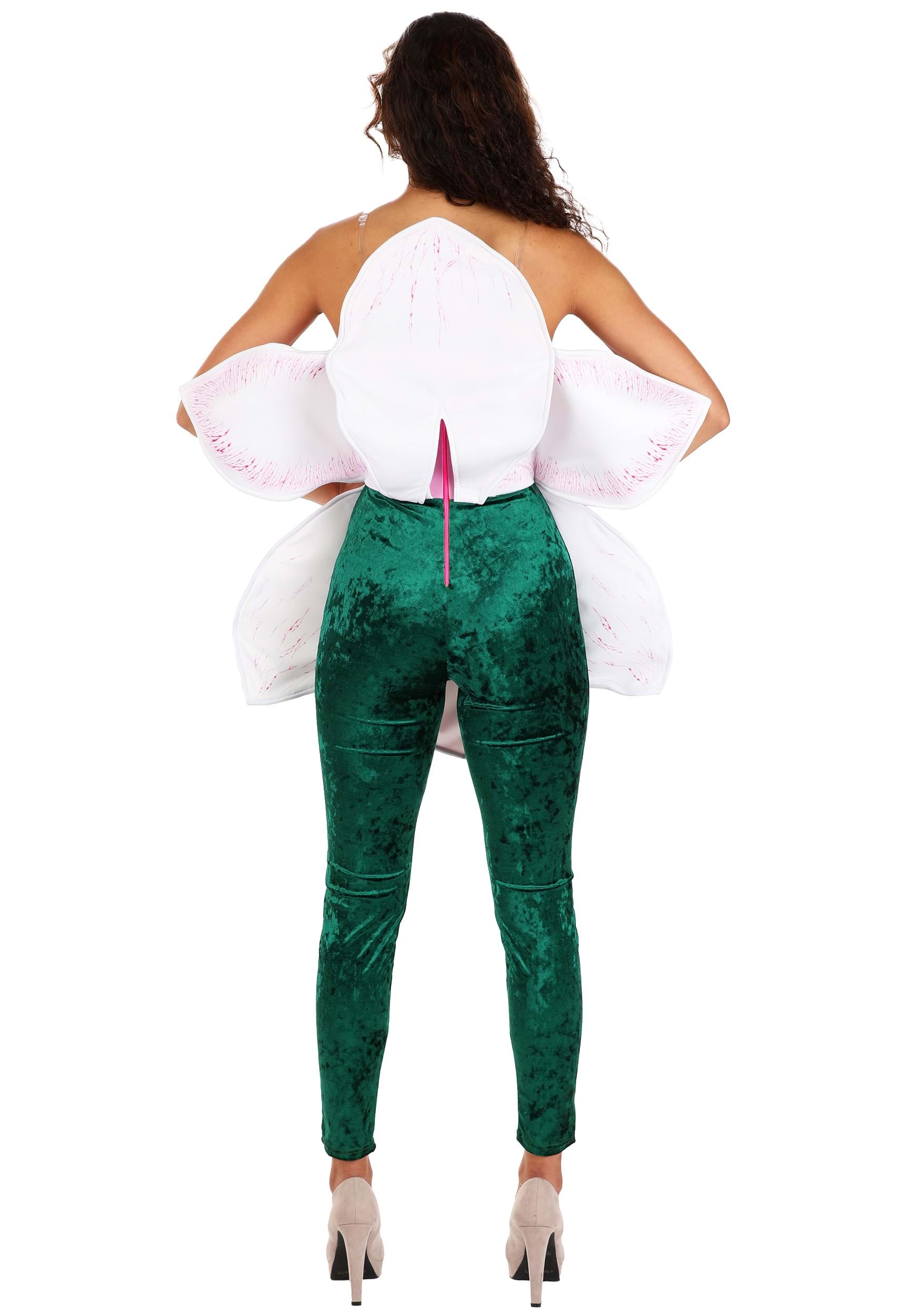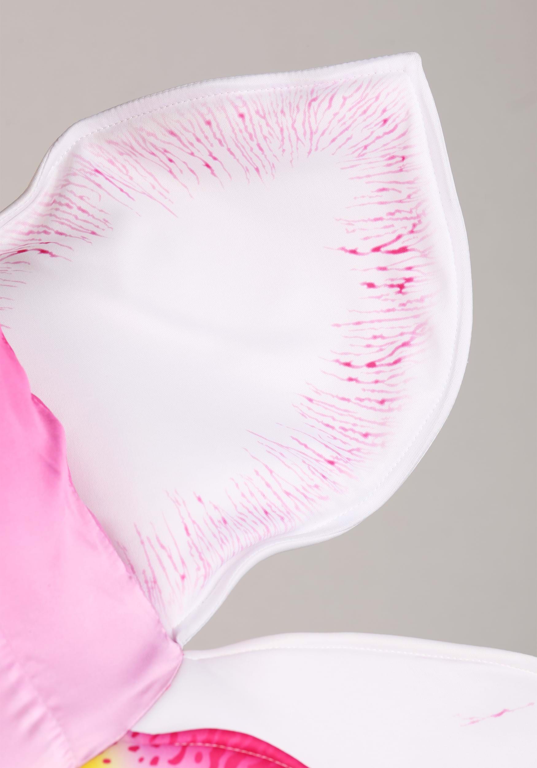 From the detailed flower center at the front to the gracefully layered back, every angle of this costume is designed for maximum impact. Whether you're striking a pose or fluttering through the room, the orchid motif remains strong and stylish.