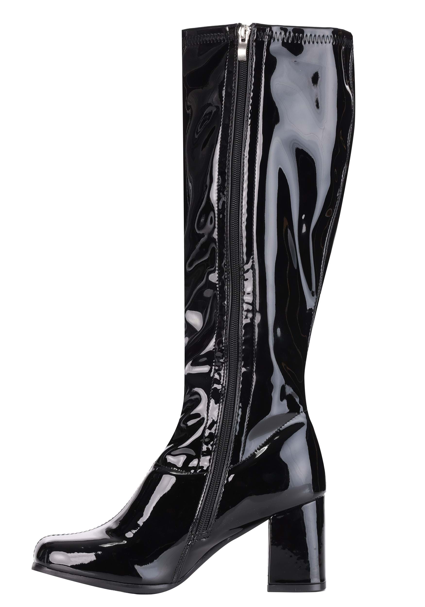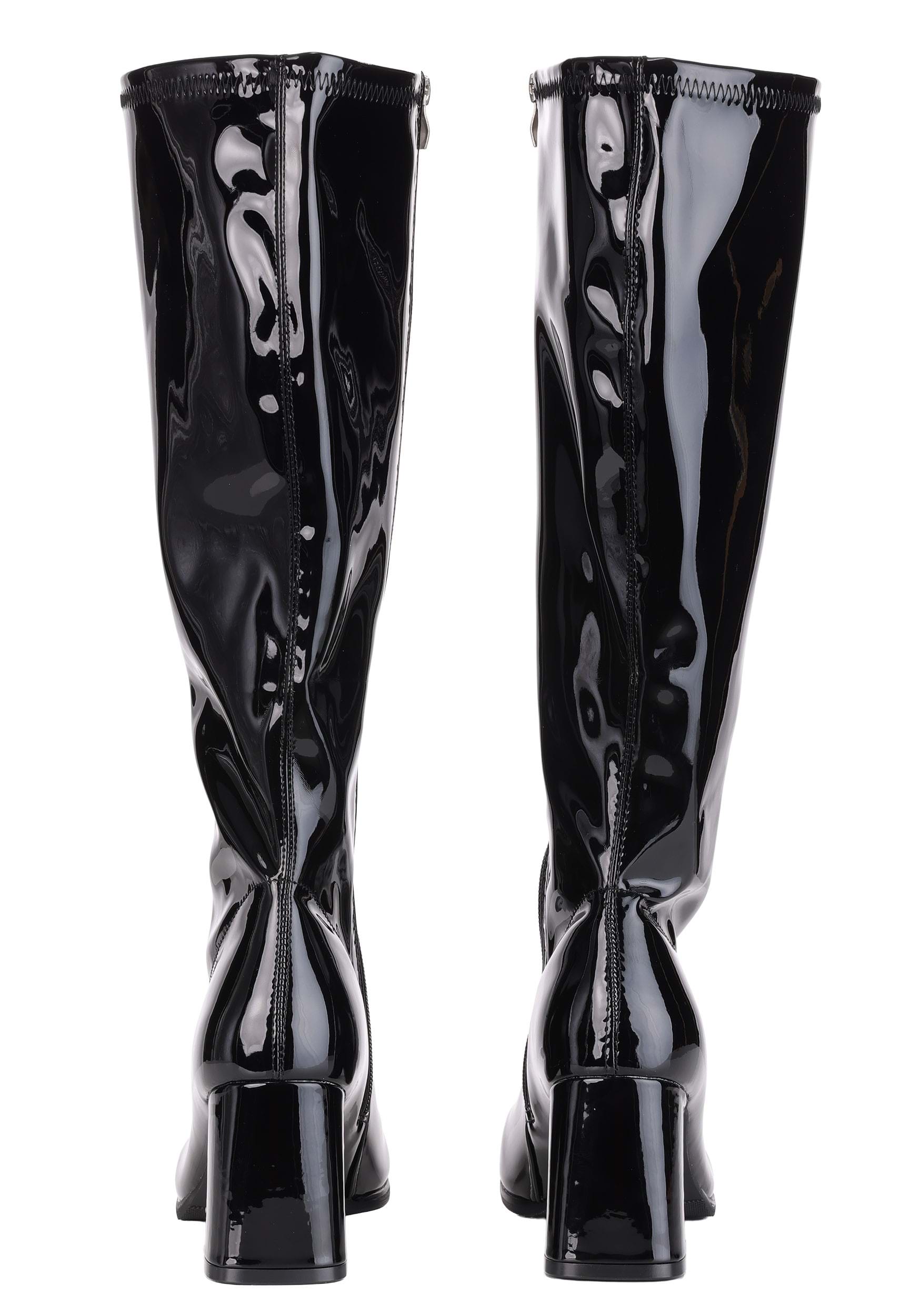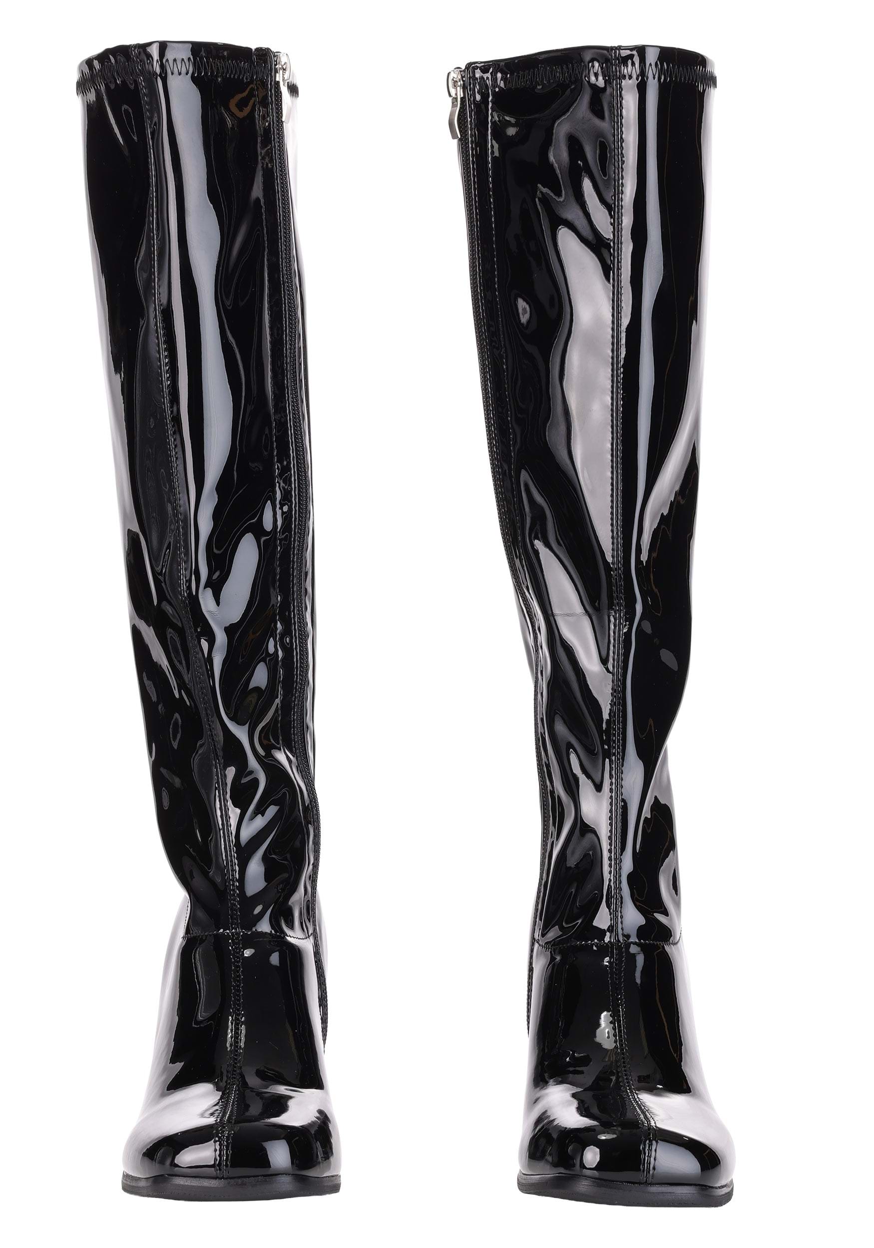 These Women's Patent White Gogo Boots deliver instant retro glamour, channeling the groovy energy of the swinging sixties with their pristine white finish and knee-high silhouette. The faux patent leather upper catches every light, creating a glossy, eye-catching shine that demands attention whether dancing the night away at a disco-themed Halloween bash or bringing iconic mod fashion to life. That chunky heel provides the perfect blend of vintage authenticity and modern stability, letting anyone strut with confidence through parties, parades, or trick-or-treating adventures.