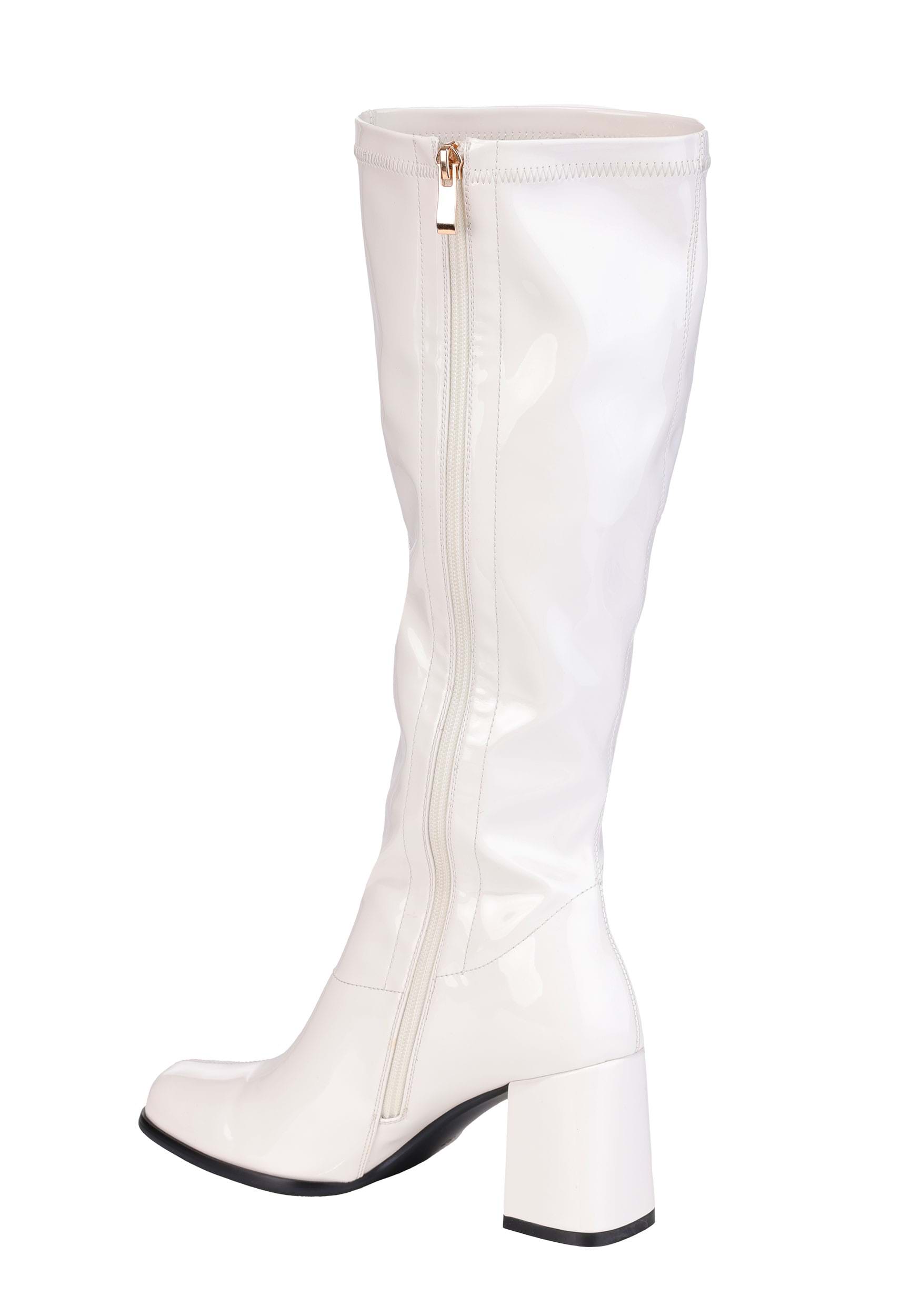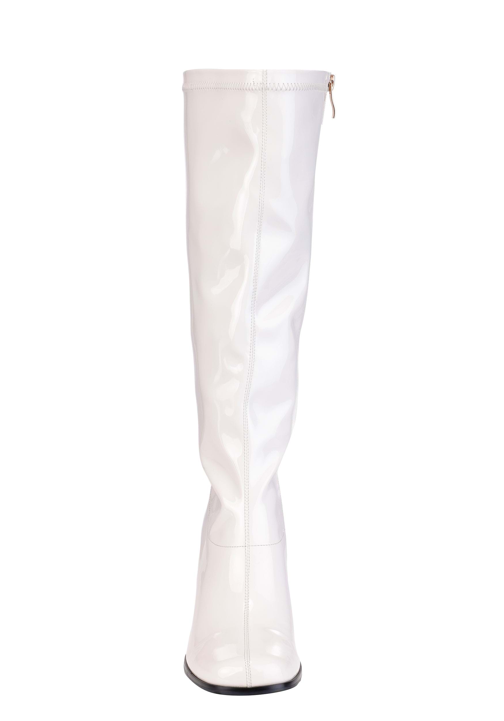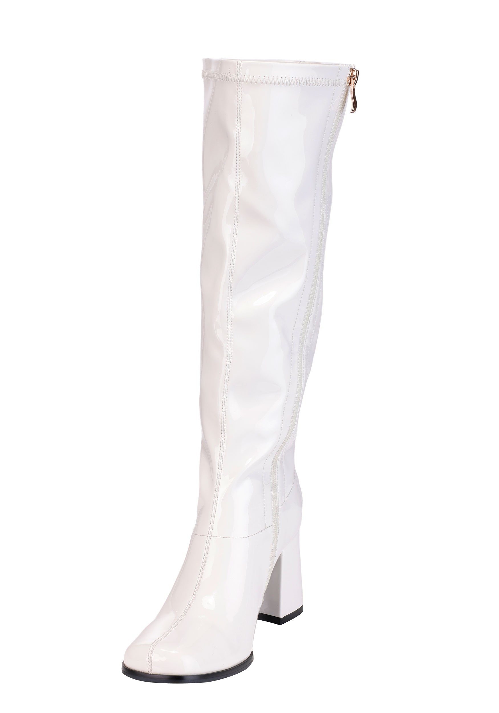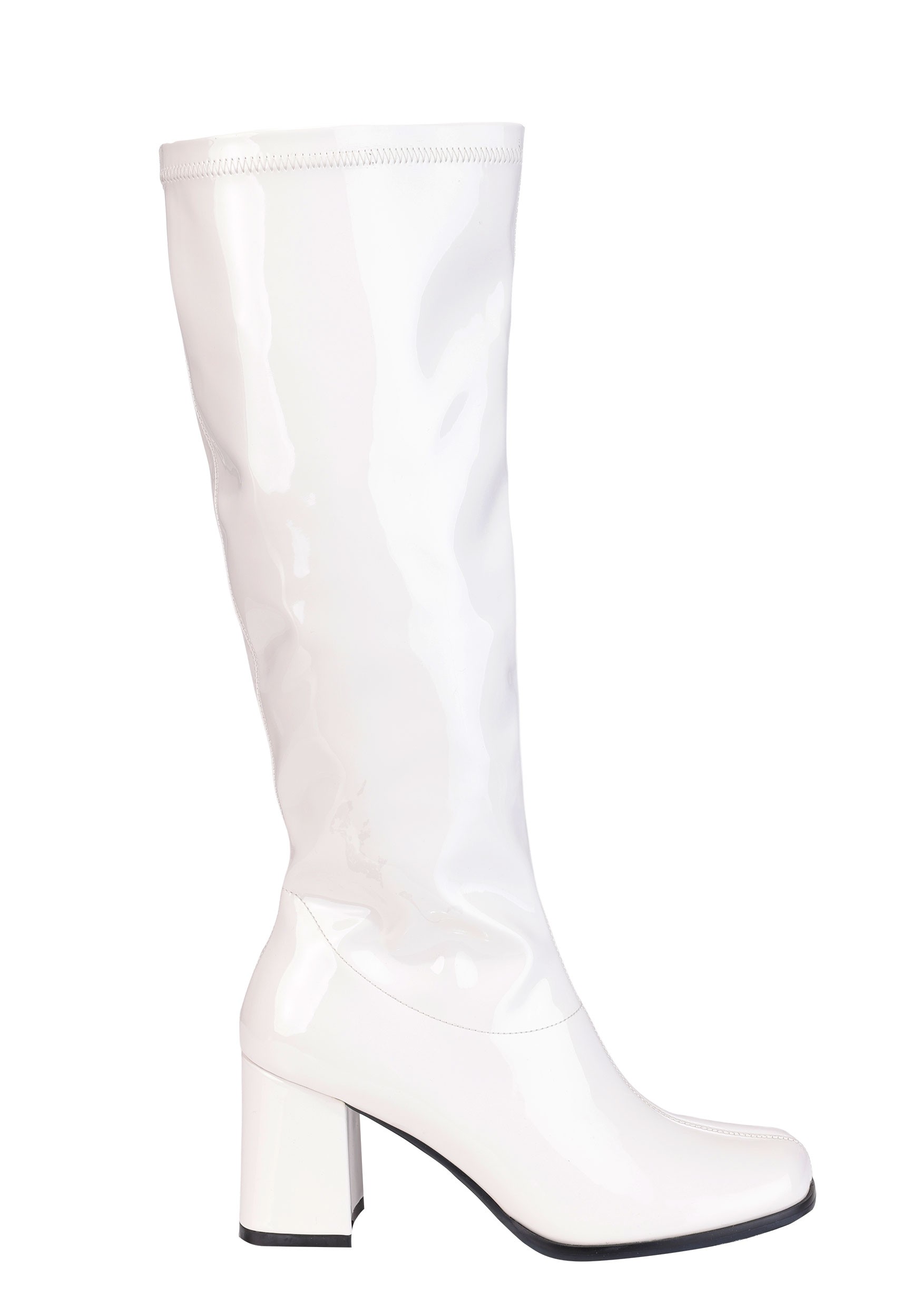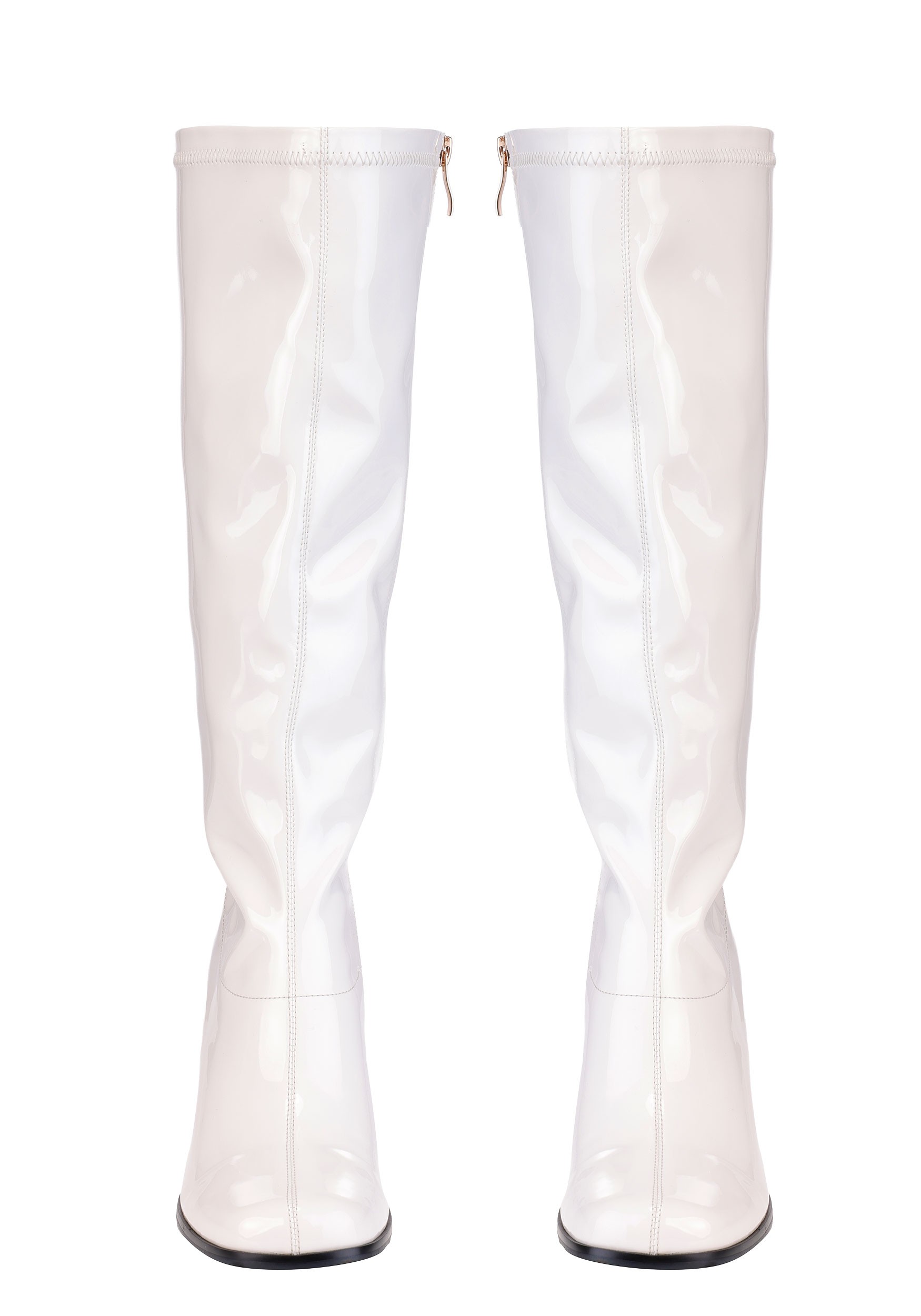This is an exclusive Women's Patent White Costume Gogo Boots.