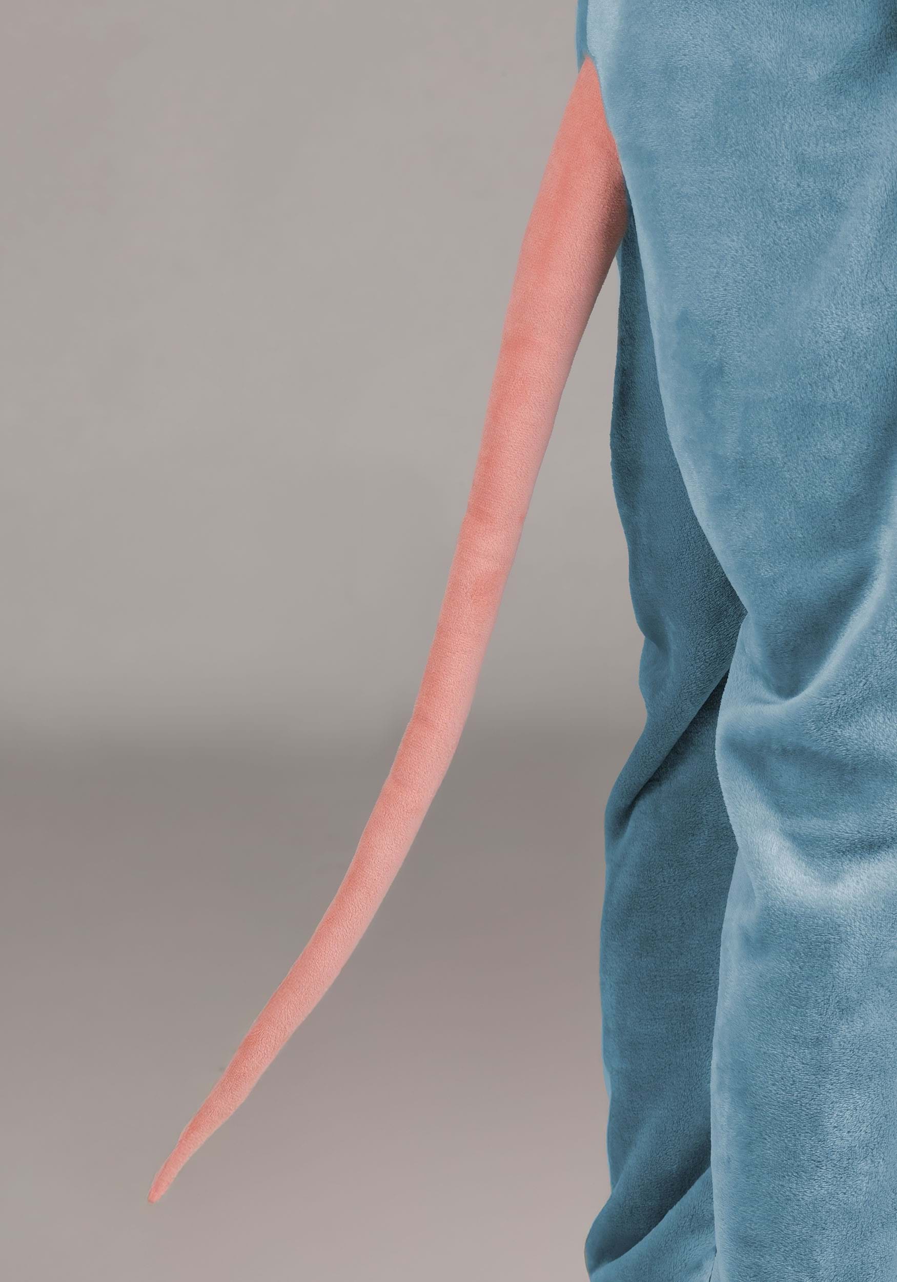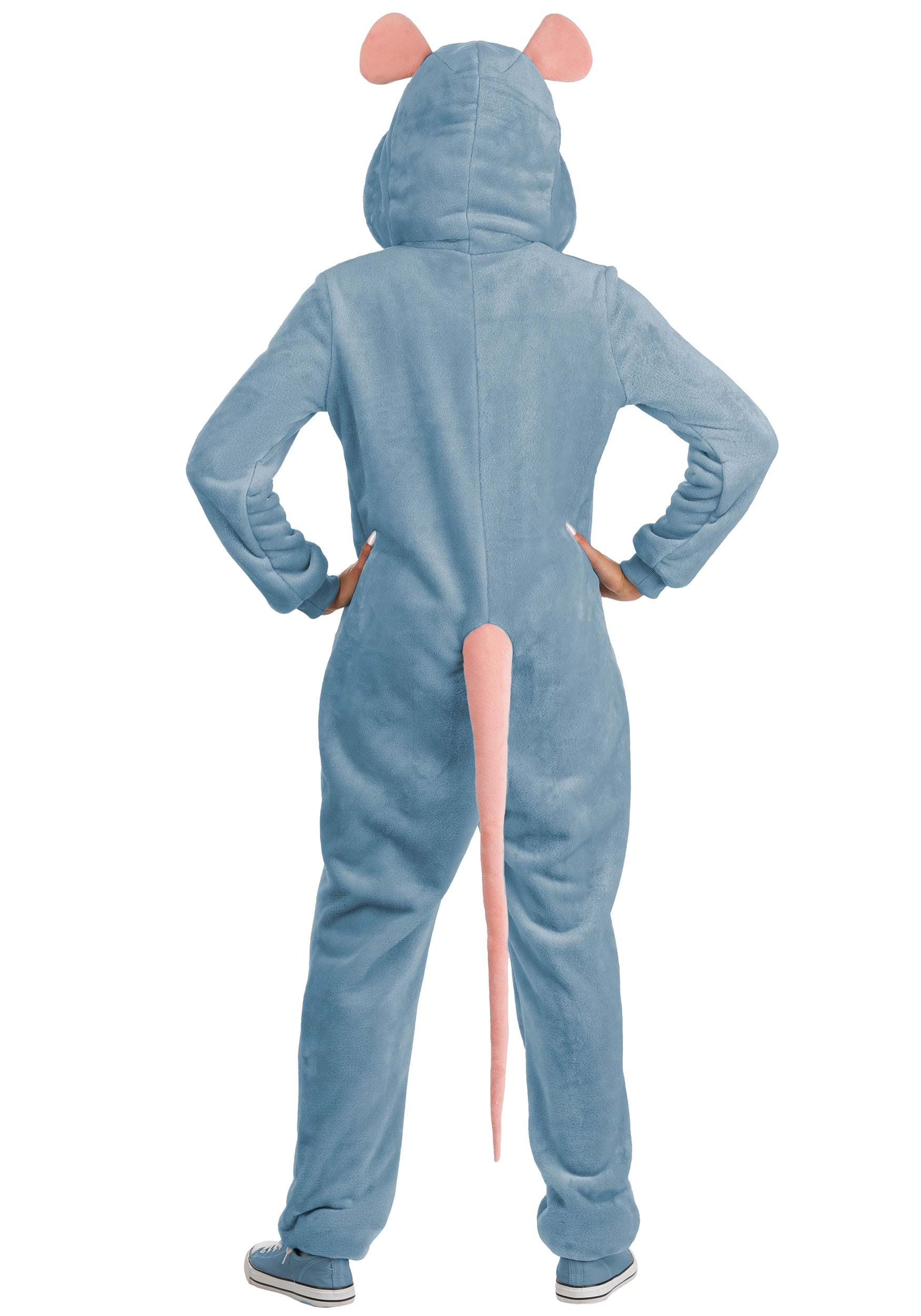 This zip-up hooded jumpsuit is crafted from ultra-soft plush fabric in Remy's signature gray, trimmed with ribbed cuffs to keep the chill away. The attached hood has embroidered eyes, a plush pink nose, foam-filled ears, and felt teeth for that unmistakable smile. The plush tail is poseable with internal wiring and soft stuffing, adding bounce and fun to your Halloween night.