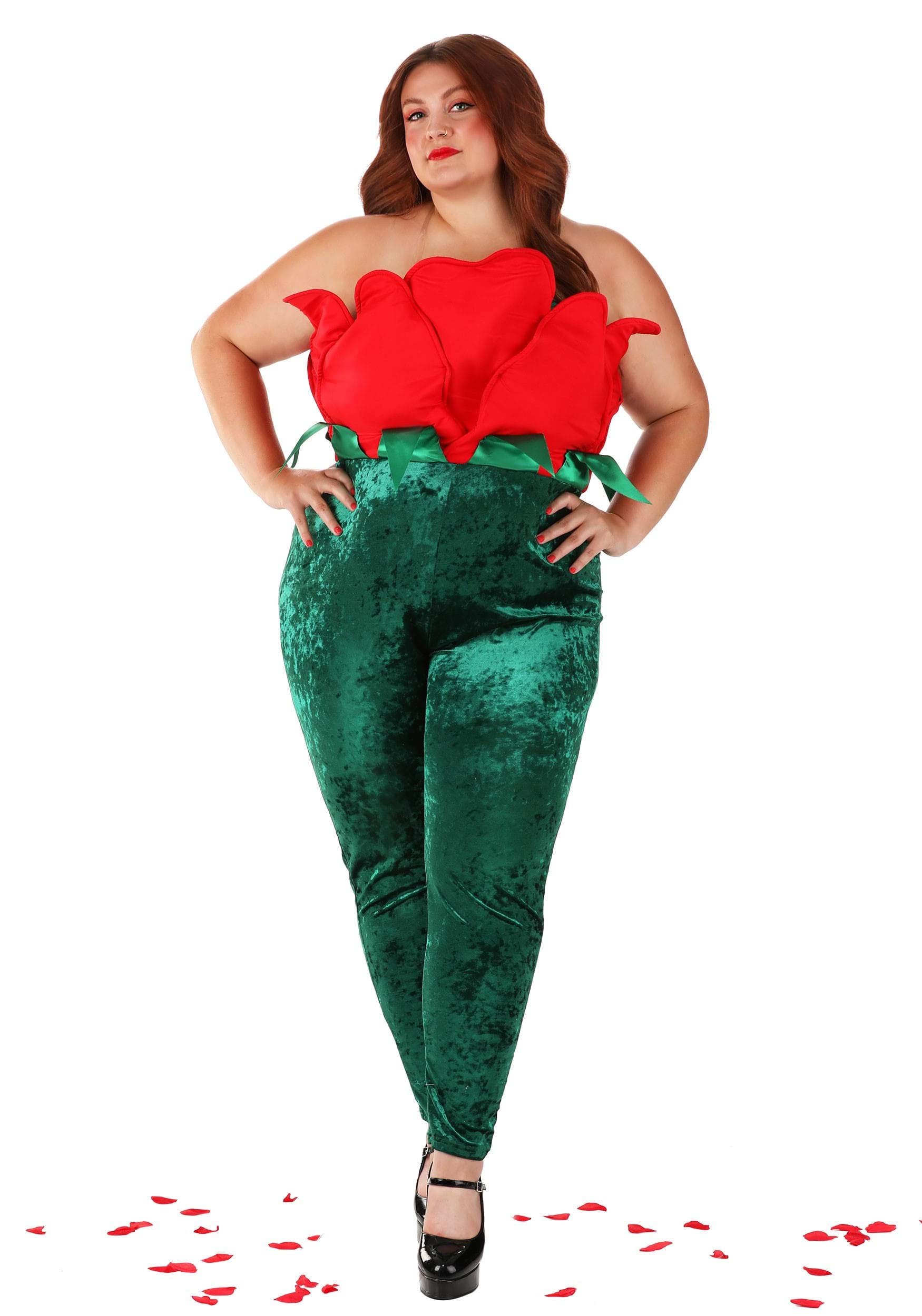 Channel the beauty of a rose in full bloom with this Plus Size Red Rose Costume for Women! This outfit takes the classic symbol of love and turns it into a fun and unique look, perfect for Halloween or themed parties. With its rich green pants and stunning red petal top, you'll look like you just blossomed from the garden. This costume is a standout for anyone who loves a playful, bold costume that's still elegant.