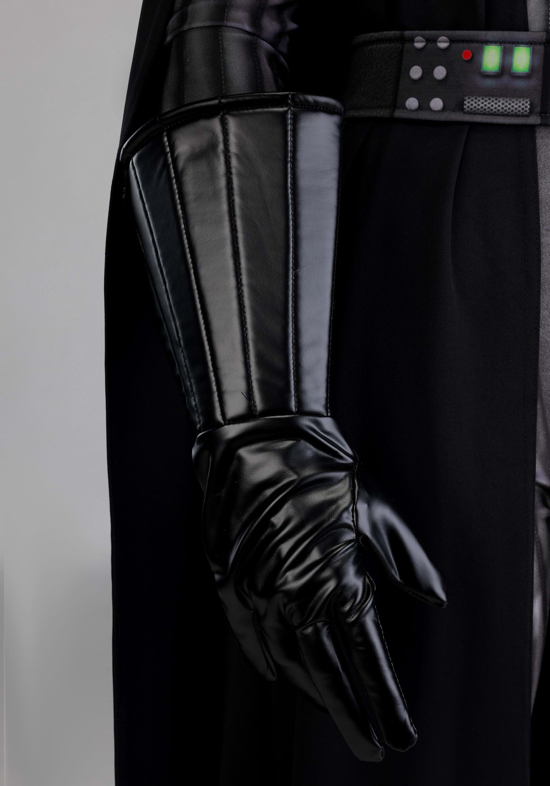 Topstitched gloves with padded tops complete the gauntleted look, while the molded foam mask features sculpted details and secures with an elastic strap for easy wear. It's the final piece of the transformation, equal parts mysterious, powerful, and unmistakably Vader.